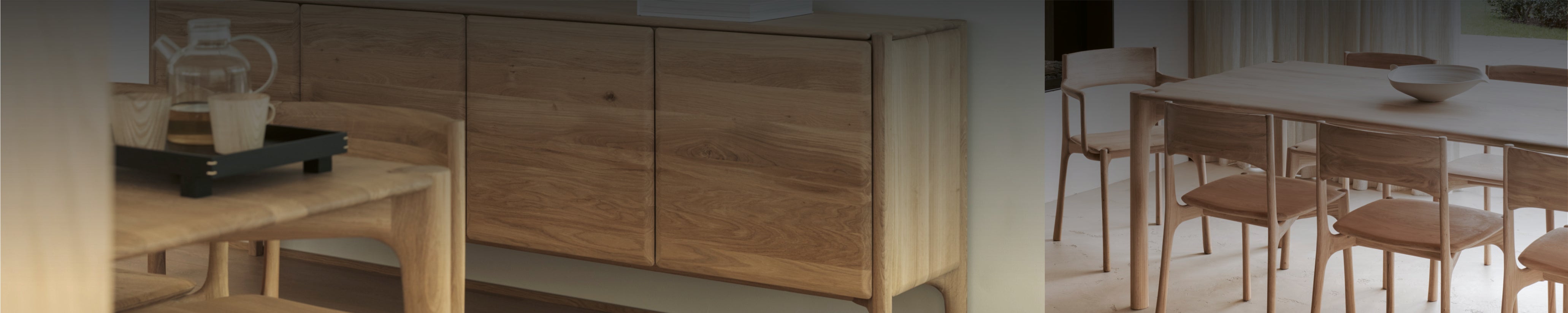 Die PI Kollektion von Ethnicraft verkörpert handwerkliche Eleganz. Weich geformte Linien, natürliches Eichenholz und eine samtige Oberfläche machen sie zum Highlight moderner Interieurs.