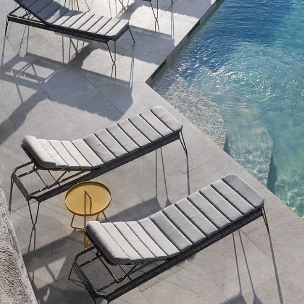 Das Geheimnis des Komforts der BREEZE Sonnenliege liegt in ihrem innovativen Materialmix. Das „Cane-Line Weave“-Geflecht, das sich elegant um den galvanisierten Stahlrahmen schwingt, ist ein Meisterwerk der Handwerkskunst. Es ist nicht nur besonders elastisch, sondern passt sich auch perfekt den Konturen des Körpers an, was ein unvergleichliches Liegegefühl gewährleistet. Die hohe Elastizität des Geflechts sorgt dafür, dass Sie stundenlang bequem entspannen können, ohne dass der Komfort nachlässt.