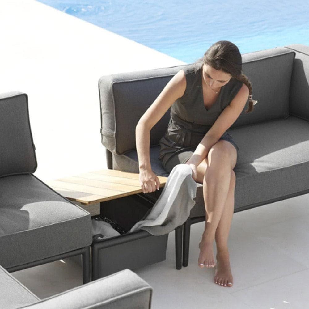 Doch die Conic Box kann mehr: Sie verwandelt sich im Handumdrehen in einen praktischen Beistelltisch. Platzieren Sie Ihr Lieblingsbuch, eine Tasse Kaffee oder einen kleinen Snack auf der stabilen Teakholzoberfläche und genießen Sie die Vielseitigkeit dieses Möbelstücks. Das minimalistische Design fügt sich nahtlos in jede Outdoor-Gestaltung ein und schafft eine harmonische Atmosphäre.
