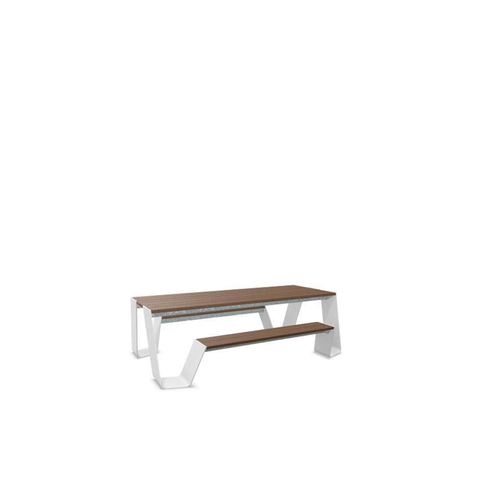 Gefertigt aus Harthölzern der Klasse I, garantiert der HOPPER Picnic eine bemerkenswerte Langlebigkeit. Die Wahl zwischen Aluminium- oder Stahlbeinen ermöglicht es, den Tisch an verschiedene Umgebungen und Stilrichtungen anzupassen. Beide Materialien sind für ihre Widerstandsfähigkeit und Robustheit bekannt, was den Tisch zu einer verlässlichen Wahl für Ihren Garten oder Ihre Terrasse macht. Die fest angebauten Bänke fügen sich nahtlos in das Gesamtbild ein und schaffen eine harmonische und reine Ästhetik.