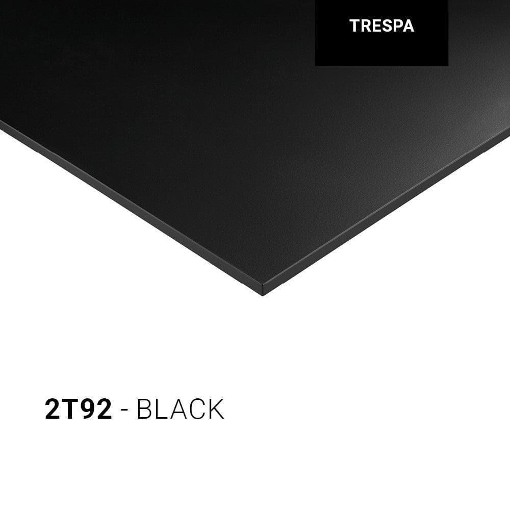 Eine weitere Option ist die Trespa-Tischplatte, eine wärmegehärtete Platte auf Harzbasis, die durch das Zusammenpressen von Holzfasern entsteht. Die Trespa-Platte bietet eine besonders glatte Oberfläche, die durch ihre Langlebigkeit und Kratzfestigkeit besticht. Sie ist in den klassischen Farben Weiß und Schwarz erhältlich.