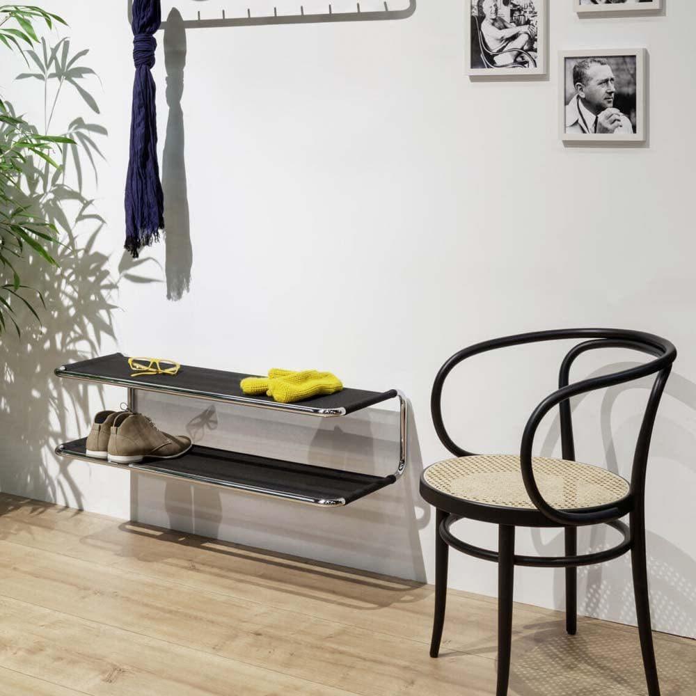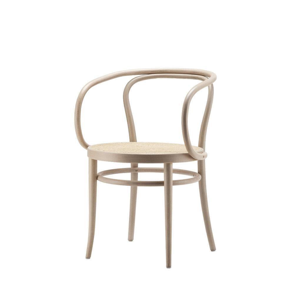 Die Sitzfläche des Armlehnstuhls 209 besteht aus feinem Rohrgeflecht, das nicht nur für einen hervorragenden Sitzkomfort sorgt, sondern auch dem Design eine luftige Leichtigkeit verleiht. Diese Balance aus Form und Funktion hat auch den renommierten Schweizer Architekten Le Corbusier beeindruckt. Er setzte den Stuhl in mehreren seiner Bauwerke ein, darunter in der berühmten Weißenhofsiedlung in Stuttgart im Jahr 1927. Le Corbusier lobte den Stuhl für seine edle Ausstrahlung, die bis heute nichts von ihrer Anziehungskraft verloren hat.