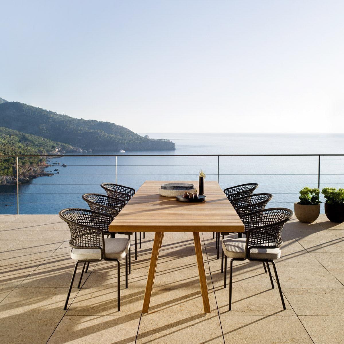 Dank der Verwendung von pulverbeschichtetem Edelstahl ist das Gestell des Stuhls nicht nur besonders langlebig, sondern auch extrem filigran. Die Sitzfläche wird von Hand mit dem exklusiv für Tribù entwickelten Tricord®-Material bezogen, das besonders UV- und verrottungsresistent ist. Diese natürlichen Farbtöne integrieren sich nahtlos in jede Gartenlandschaft, sei es ein Haus am Meer oder eine moderne Dachterrasse, und verleihen Ihrem Außenbereich ein natürliches, zeitloses Flair.