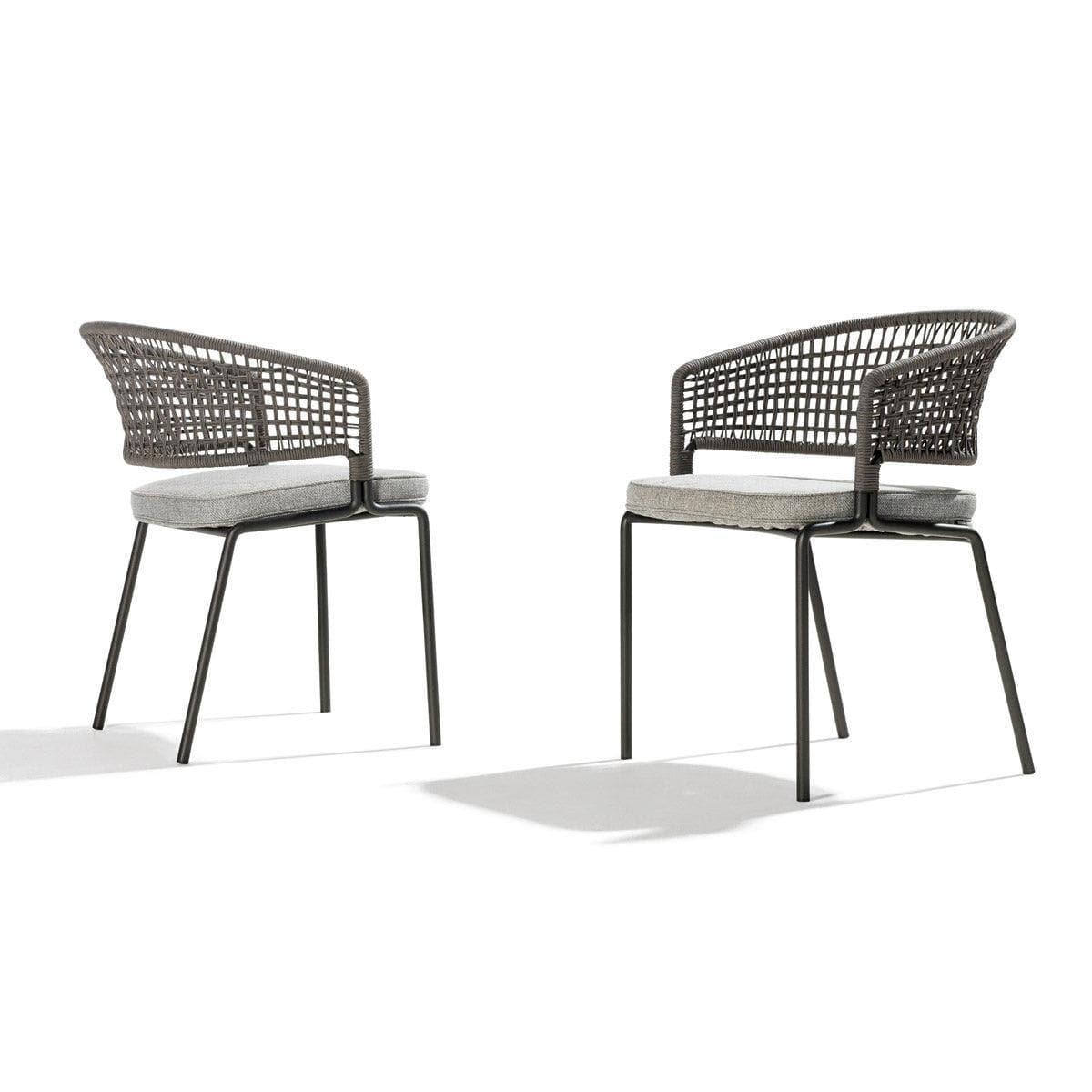 Der Armlehnstuhl CTR von Tribù ist ein Meisterwerk des Designs, das die Grenzen zwischen technischer Präzision und natürlicher Eleganz aufhebt. Die Kollektion, entworfen von dem renommierten italienischen Designer Piergiorgio Cazzaniga, ist ein Paradebeispiel für die harmonische Verbindung von handwerklichem Können und zeitlosem Stil. Der Stuhl besticht durch seinen pulverbeschichteten Edelstahlrohrahmen, der in einer ununterbrochenen Linie gestaltet ist. Diese Konstruktion erfordert ein hohes Maß an handwerklichem Geschick, da die Ecken des Rahmens gerade sind, während das Rohrprofil rund bleibt.
