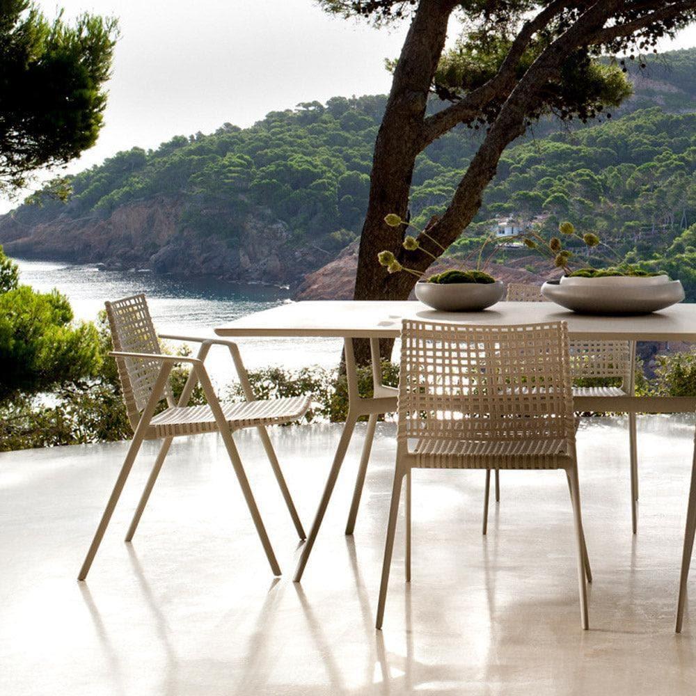 Alle Möbel der Kollektion sind durch ihr Gestell aus beschichtetem Aluminium und durch die Lehnen und Sitzfläche aus Batyline®-Gewebe extrem unterhaltsfreundlich und auch für den Gebrauch bei rauem salzigem Klima wie am Meer oder am Swimmingpool geeignet.
