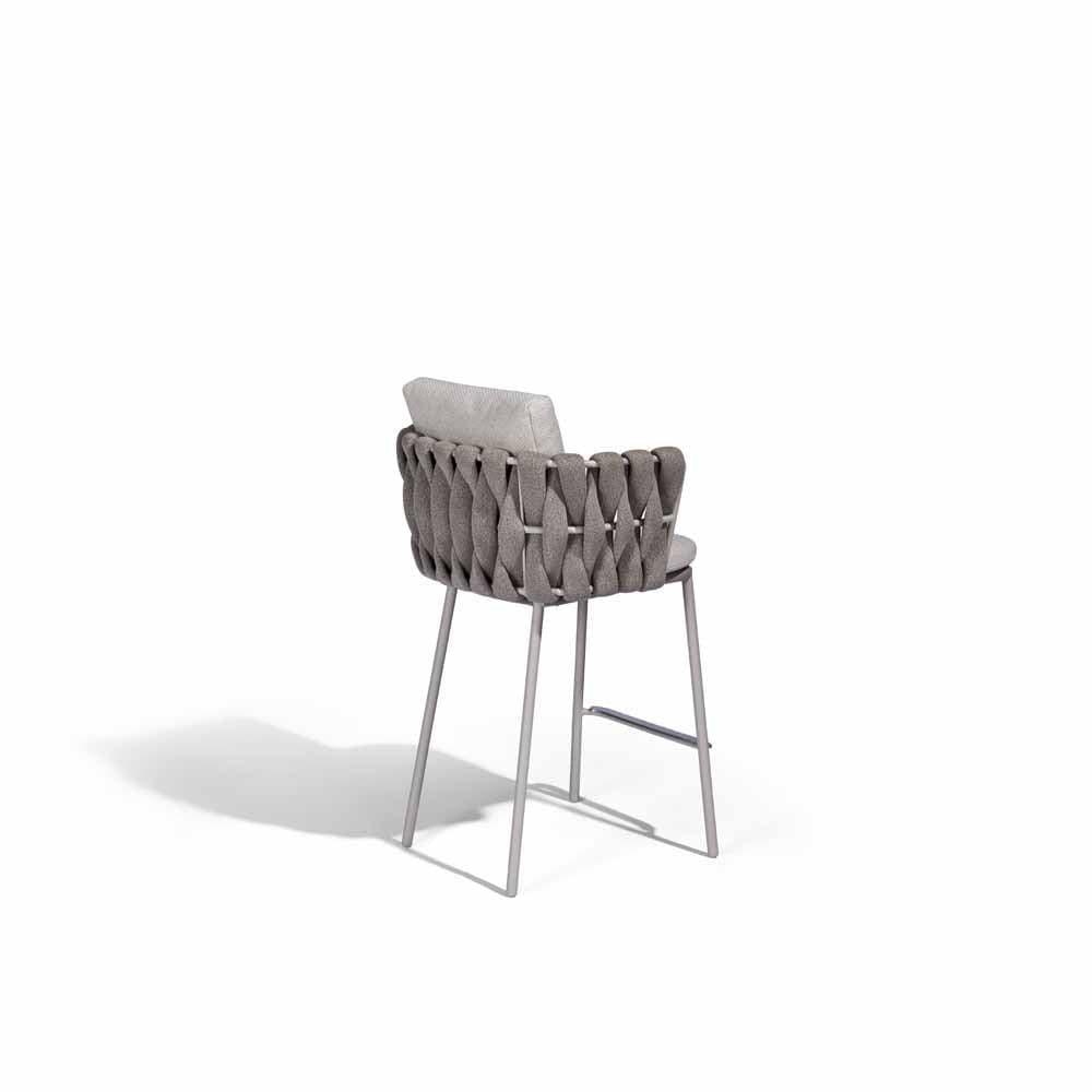 Each TOSCA bar stool is manufactured with the utmost care and precision. The backrest is made from an innovative mix of materials specially developed by Tribù to meet the highest demands. No seams are visible in the pleasantly soft weave, giving the stool a seamless and elegant appearance. This detail highlights the craftsmanship and dedication that goes into every piece in the Tosca collection.
