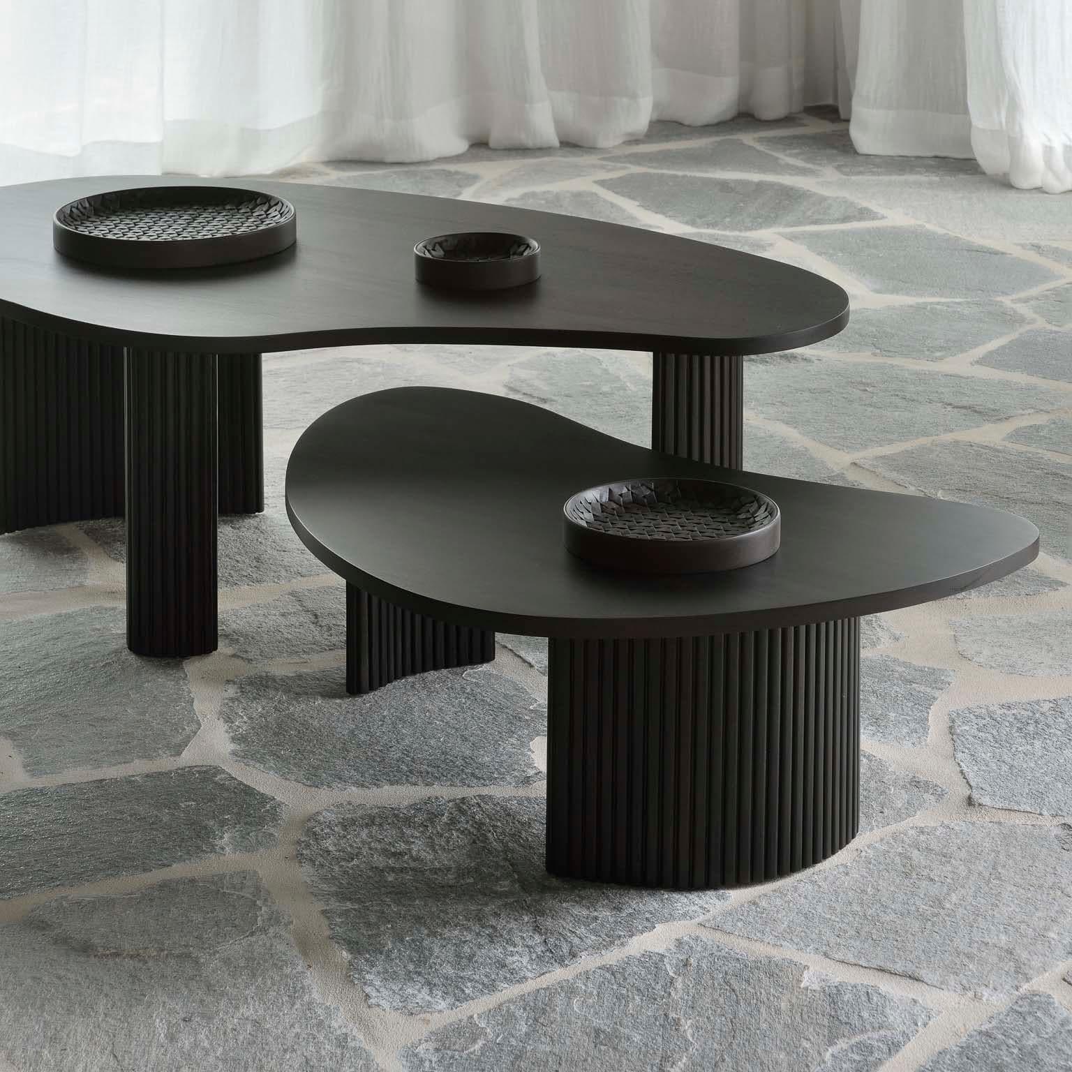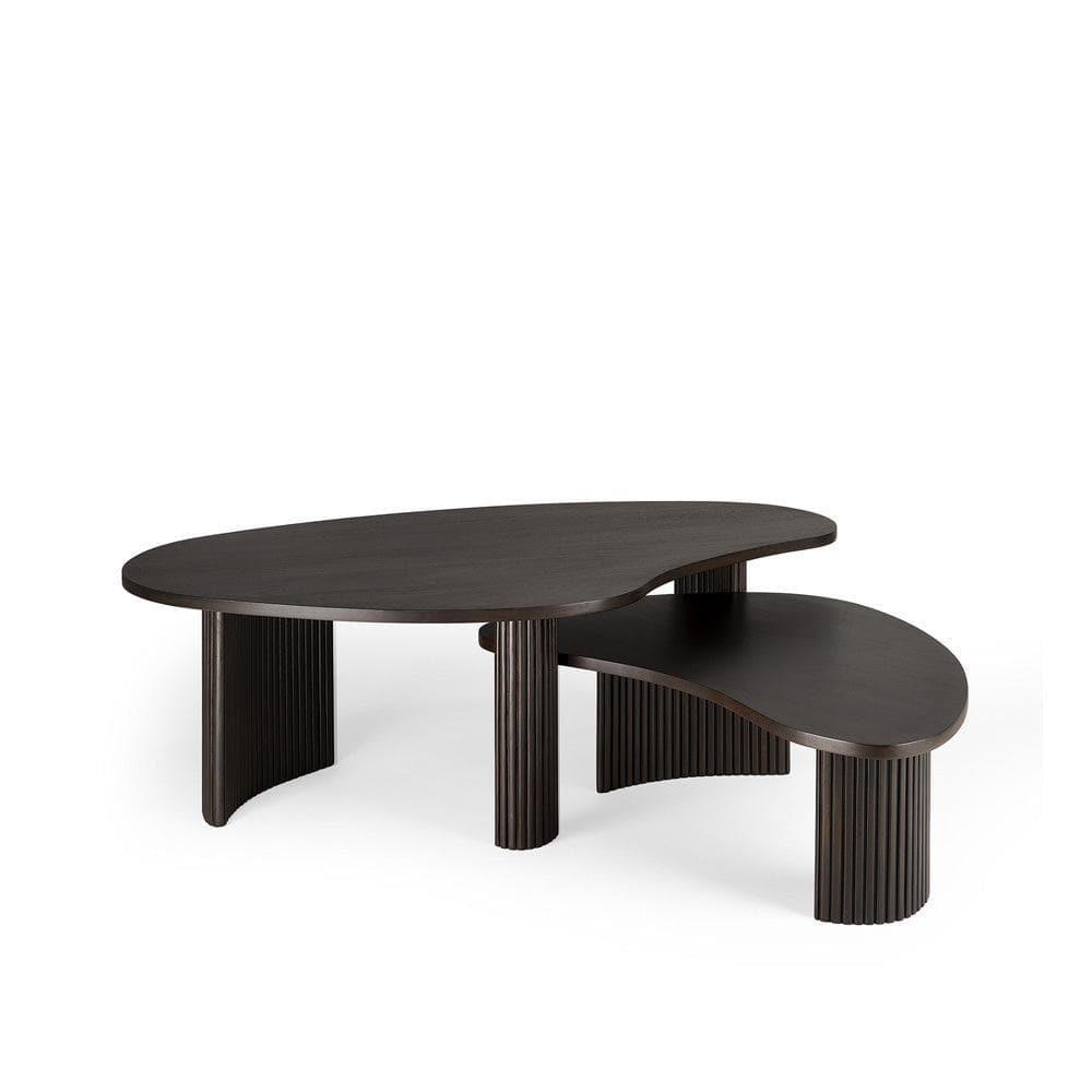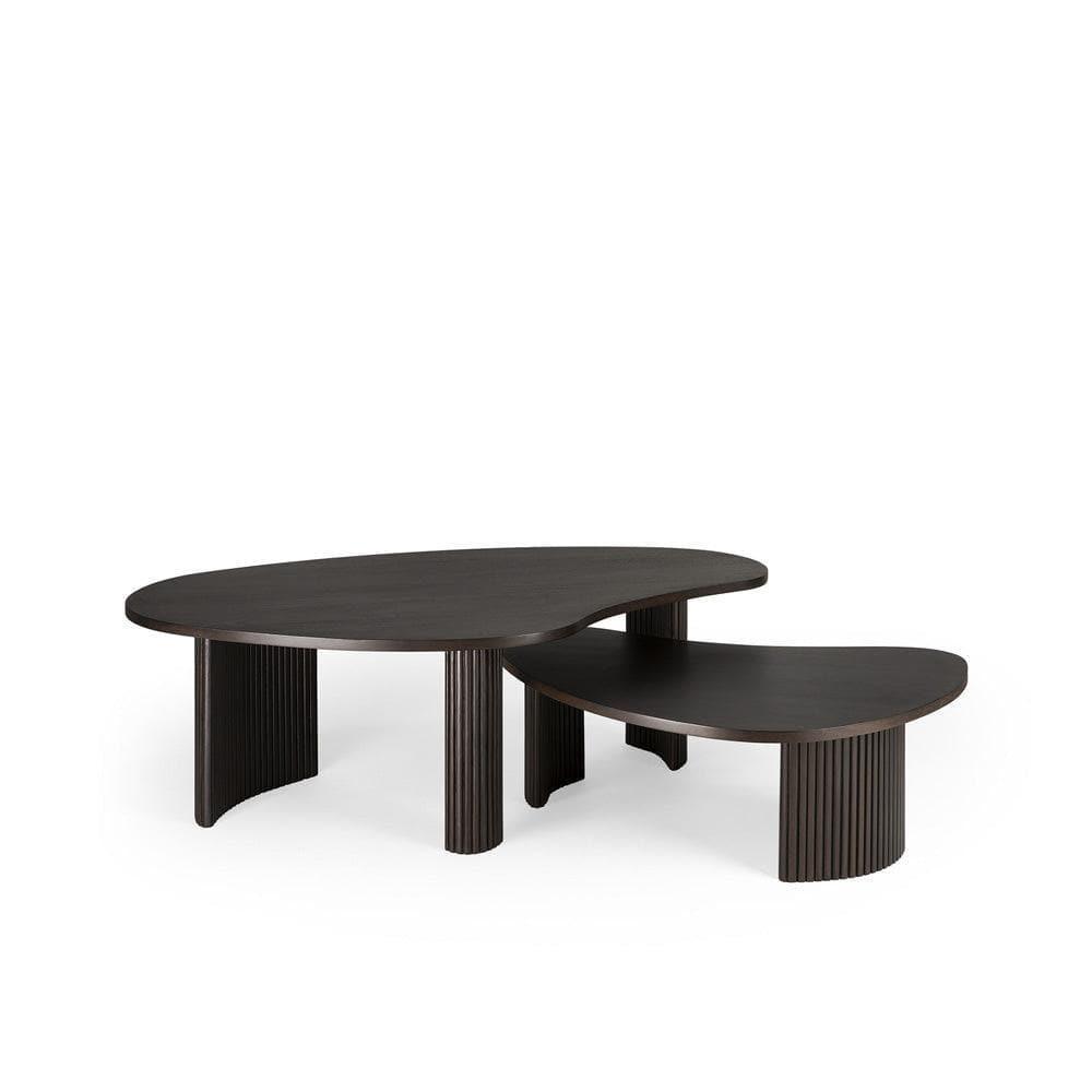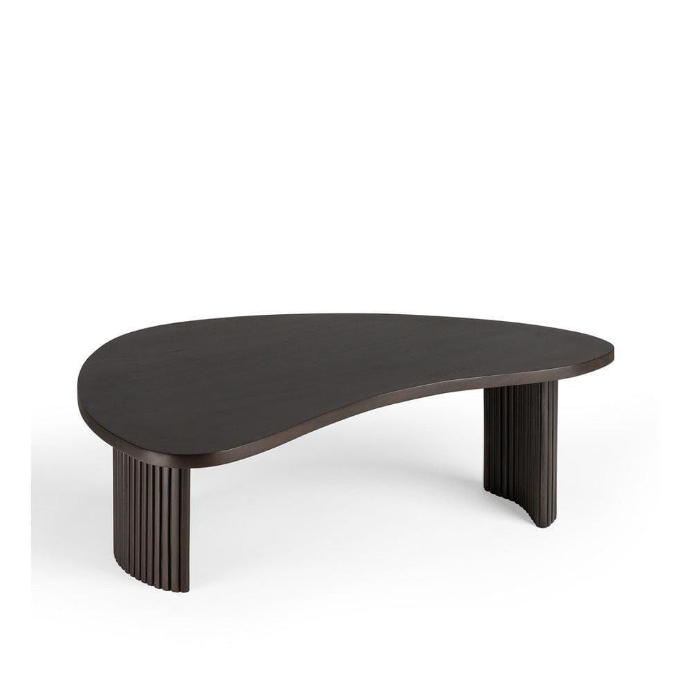 The Ethnicraft BOOMERANG coffee table combines timeless elegance with modern playfulness, making it an outstanding piece of furniture for your home. Its distinctive, pebble-shaped table top rests on a cleverly crafted, fluted base that gives the table stability and a touch of sophistication. This design piece inevitably catches everyone's eye and adds a special aesthetic touch to any room.
