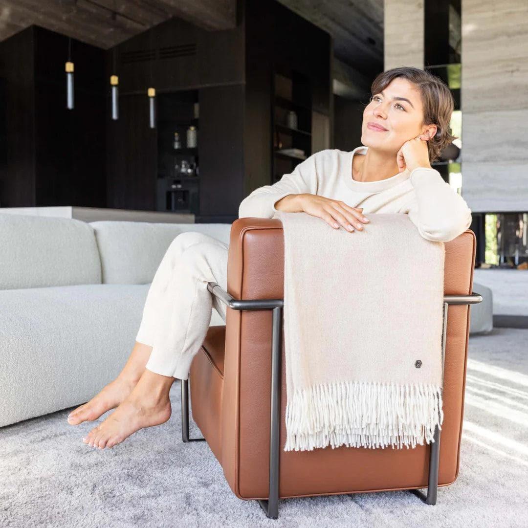 Thanks to the excellent thermal properties of the alpaca fiber, the wonderful blankets made from ultrafine alpaca wool provide wonderful warmth and are an irresistible invitation to snuggle up and relax. The sophisticated CIELO winter blanket is made using a special manufacturing process and, with 50% more weight, offers the warming luxury of a particularly warm plaid. An absolute must-have for cold days and long evenings in the garden or on the terrace.