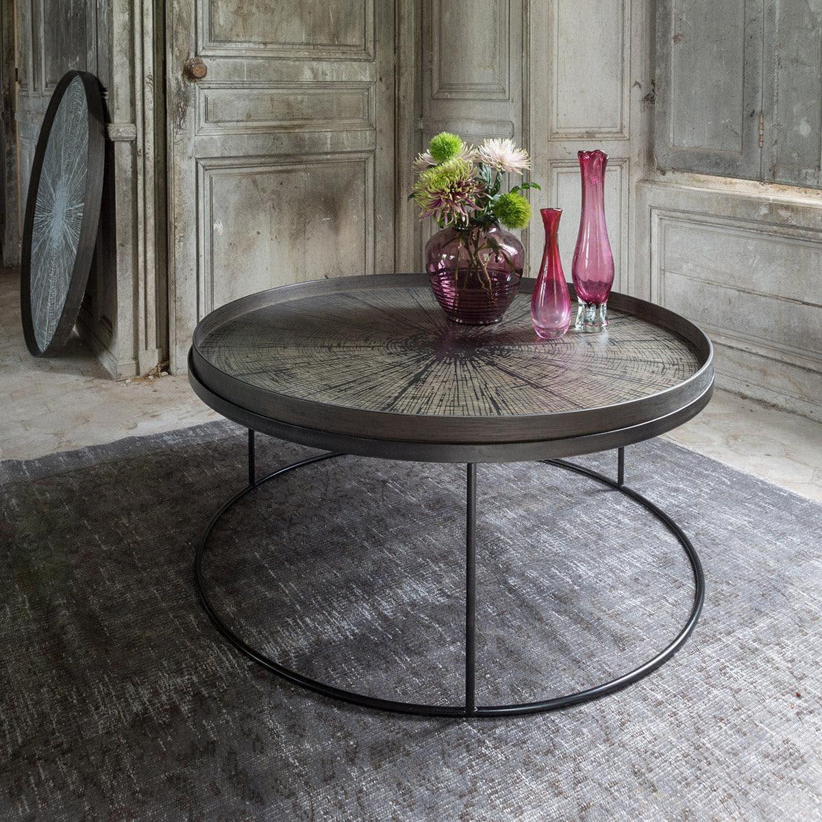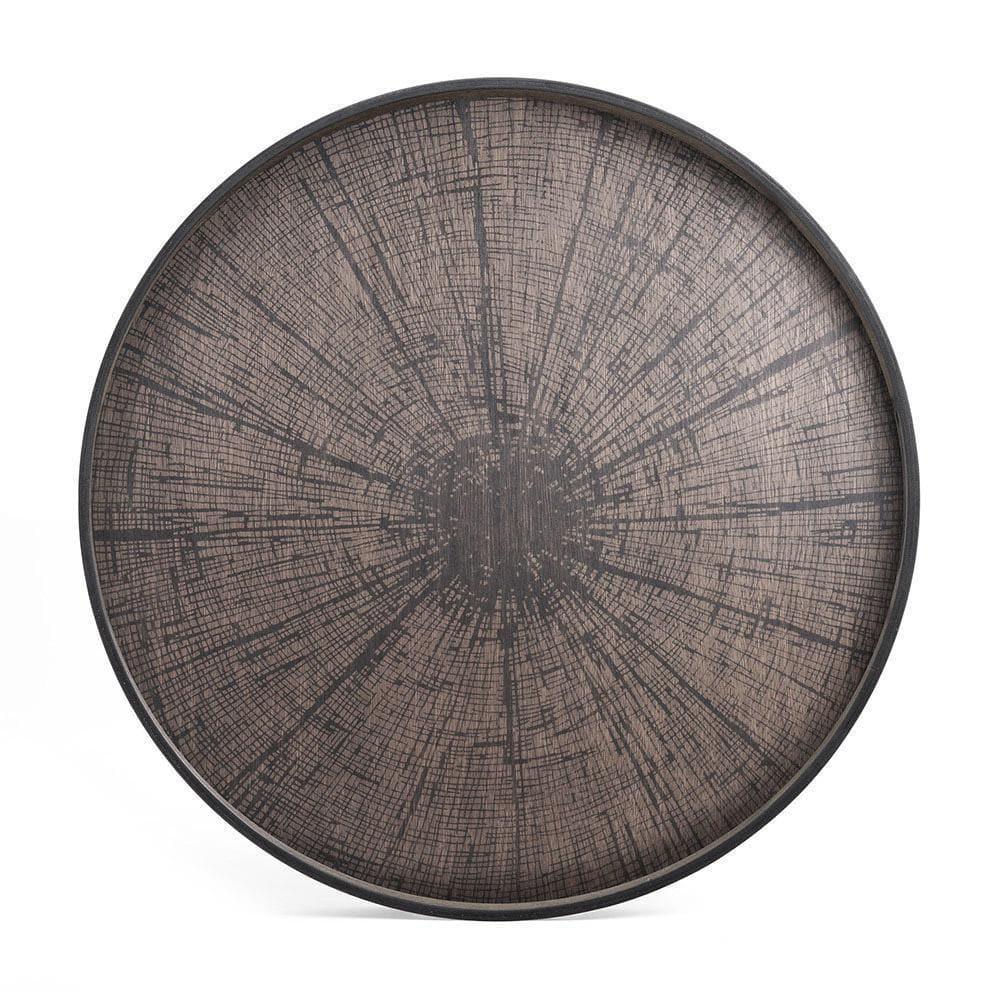 The CLASSICS BLACK SLICE tray from Ethnicraft embodies a masterful combination of style and functionality. With an impressive diameter of 92 cm, it attracts everyone's attention and becomes the focal point of any table setting. The subtle color palette, consisting of dark tones and vibrant white lines, evokes the tranquility and power of nature. This contrasting combination gives the tray a dynamic yet harmonious look that will accentuate any room.
