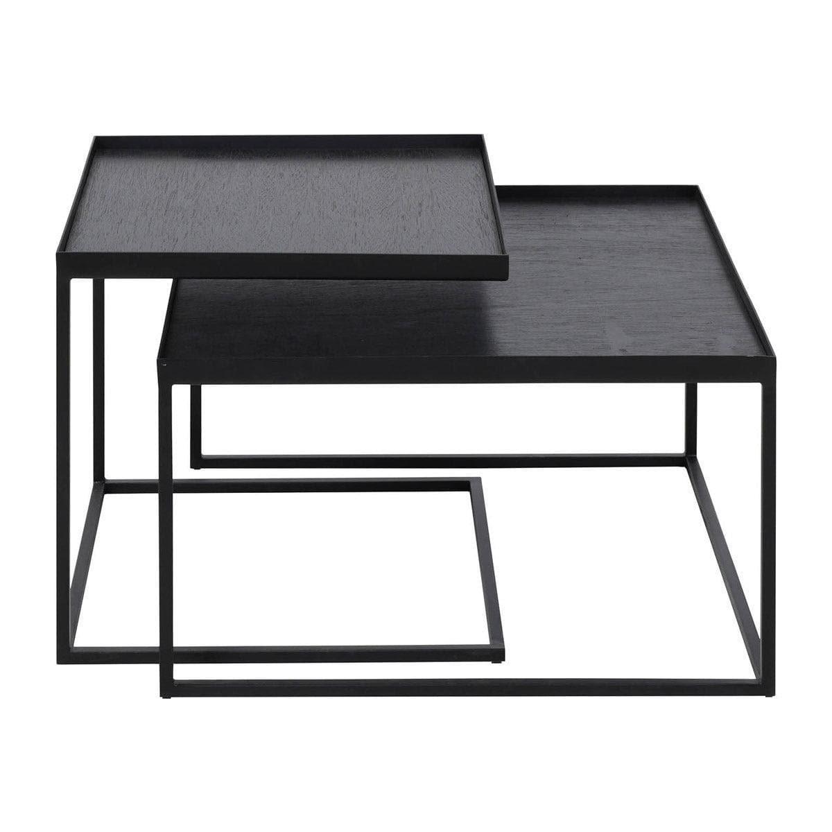 The Ethnicraft coffee table FALL is more than just a piece of furniture - it is a stylish addition to your living room that impresses with its versatility and elegance. This set consists of two tables that impress with their minimalist design and high-quality workmanship made of solid metal in black color. The surfaces of the tables are finished with a dark wood veneer, which creates a warm and modern atmosphere.