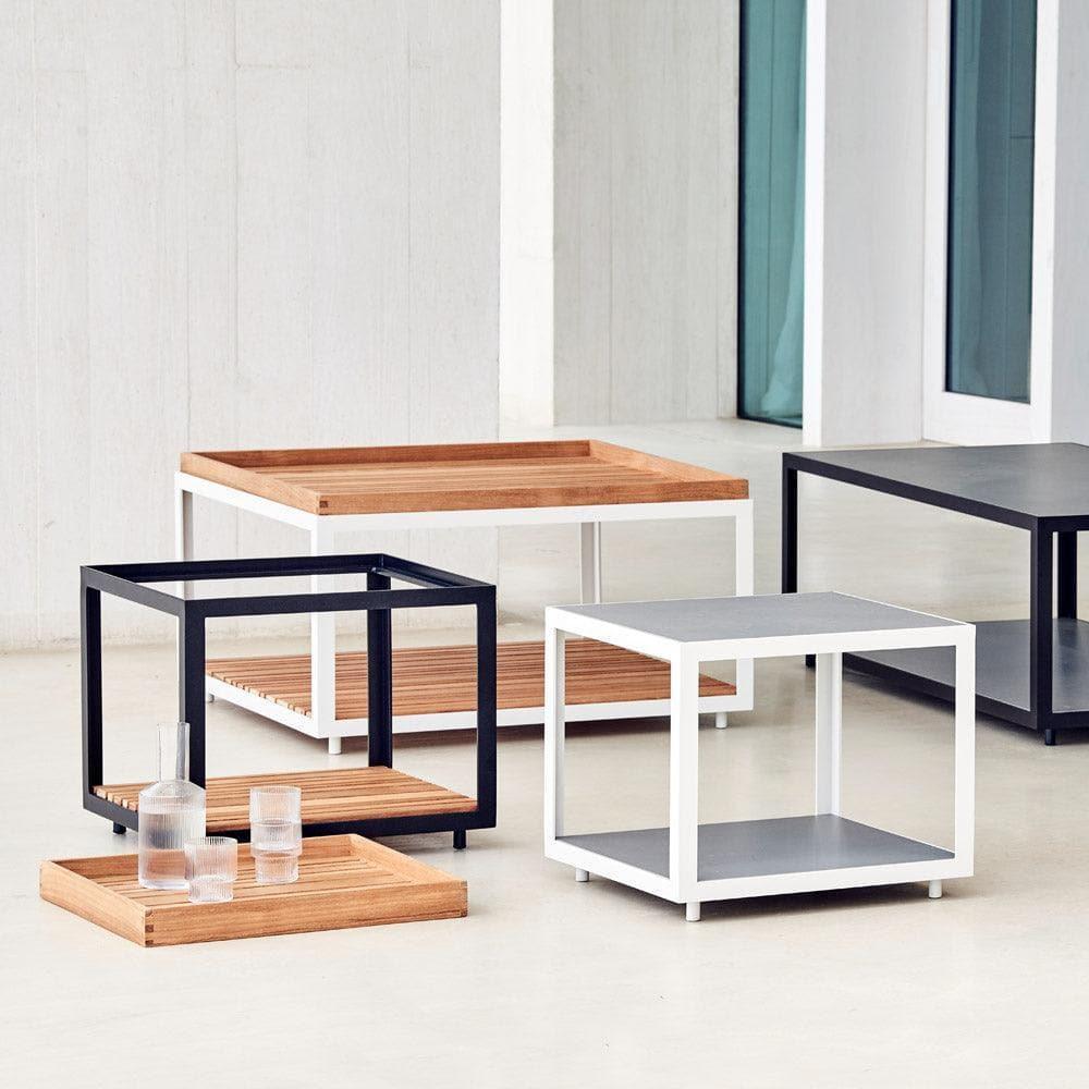 Level is available with a lava gray or white powder-coated aluminum frame and with a certified teak or concrete table top. Cane-line teak is tested and cultivated according to the SVLK certification system.