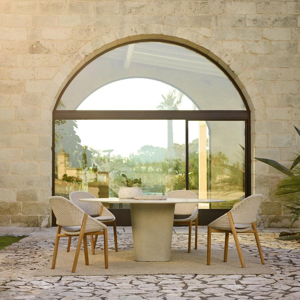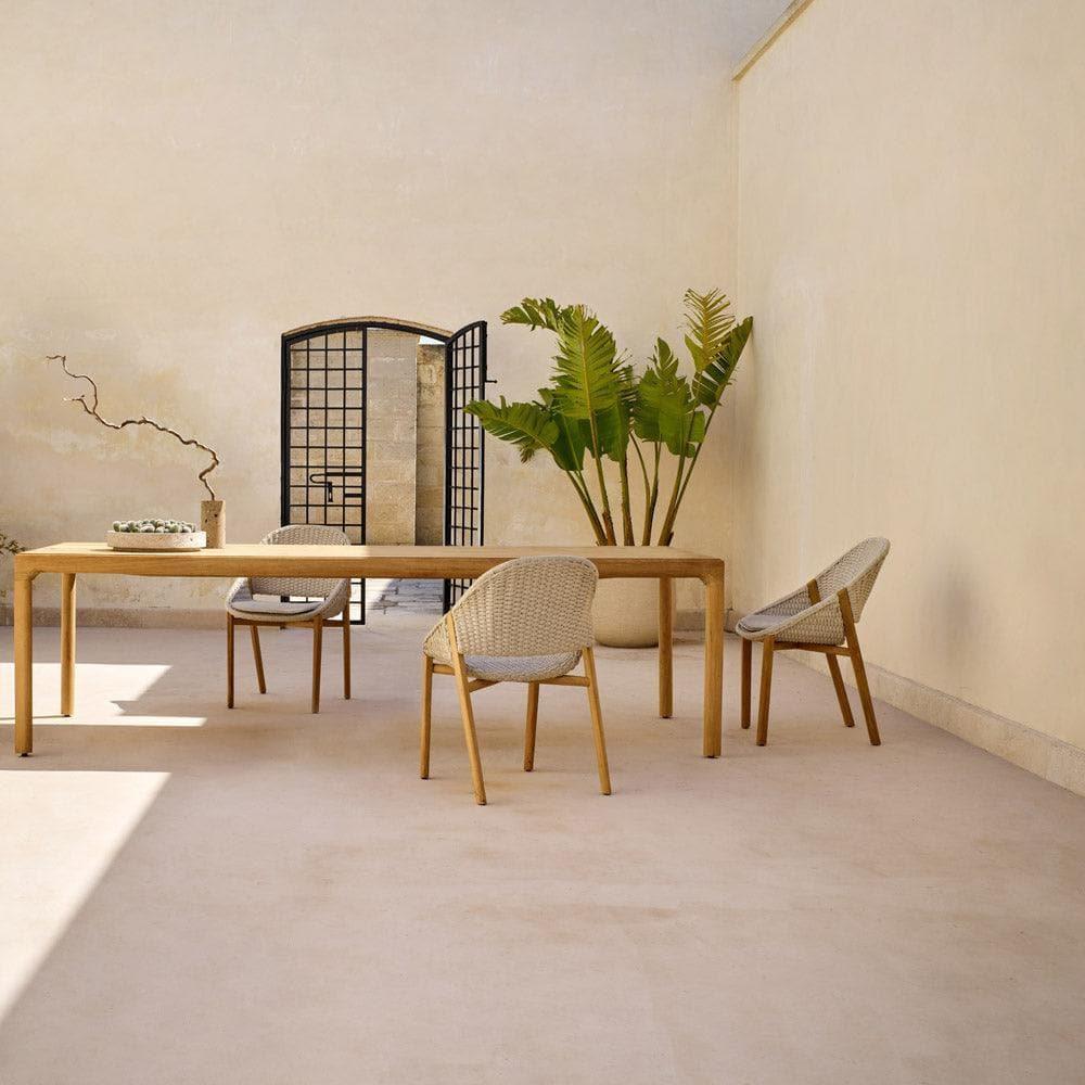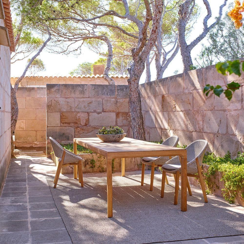 Thanks to the use of teak, the chair frame is not only particularly delicate, but also extremely durable. Each chair is hand-covered with Tricord® - the material was developed exclusively for Tribù and is particularly UV and rot-resistant. The natural colors fit into any garden landscape - from the house by the sea to the purist roof terrace and create a natural, timeless flair.