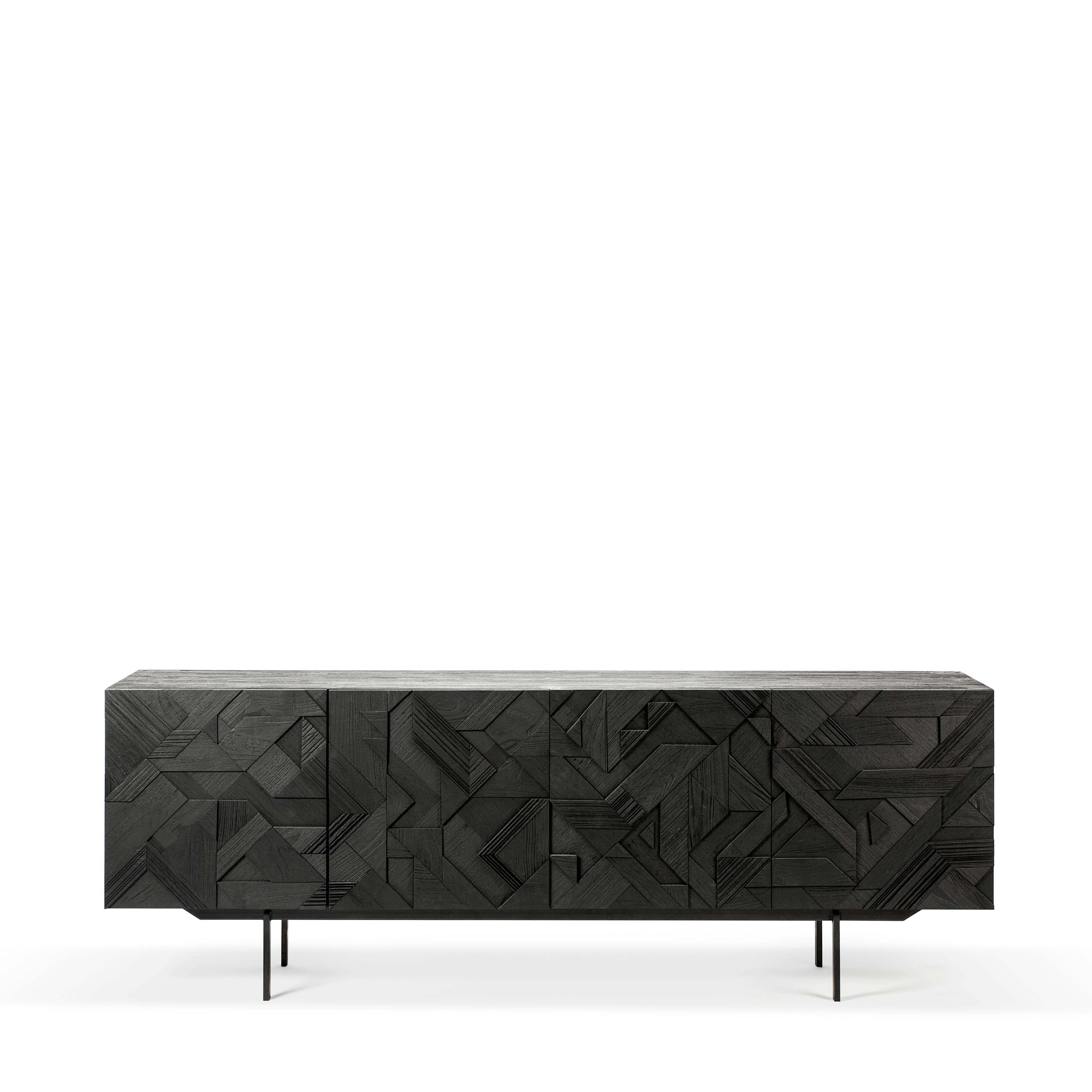 The GRAPHIC chest of drawers from Ethnicraft is a masterfully designed piece of furniture that impresses in terms of both design and functionality. When developing this chest of drawers, designer Alain van Havre placed particular emphasis on giving the surface a unique movement. By layering and combining triangular shapes, a visually appealing composition of high-quality teak wood was created, giving the piece of furniture its characteristic graphic design.