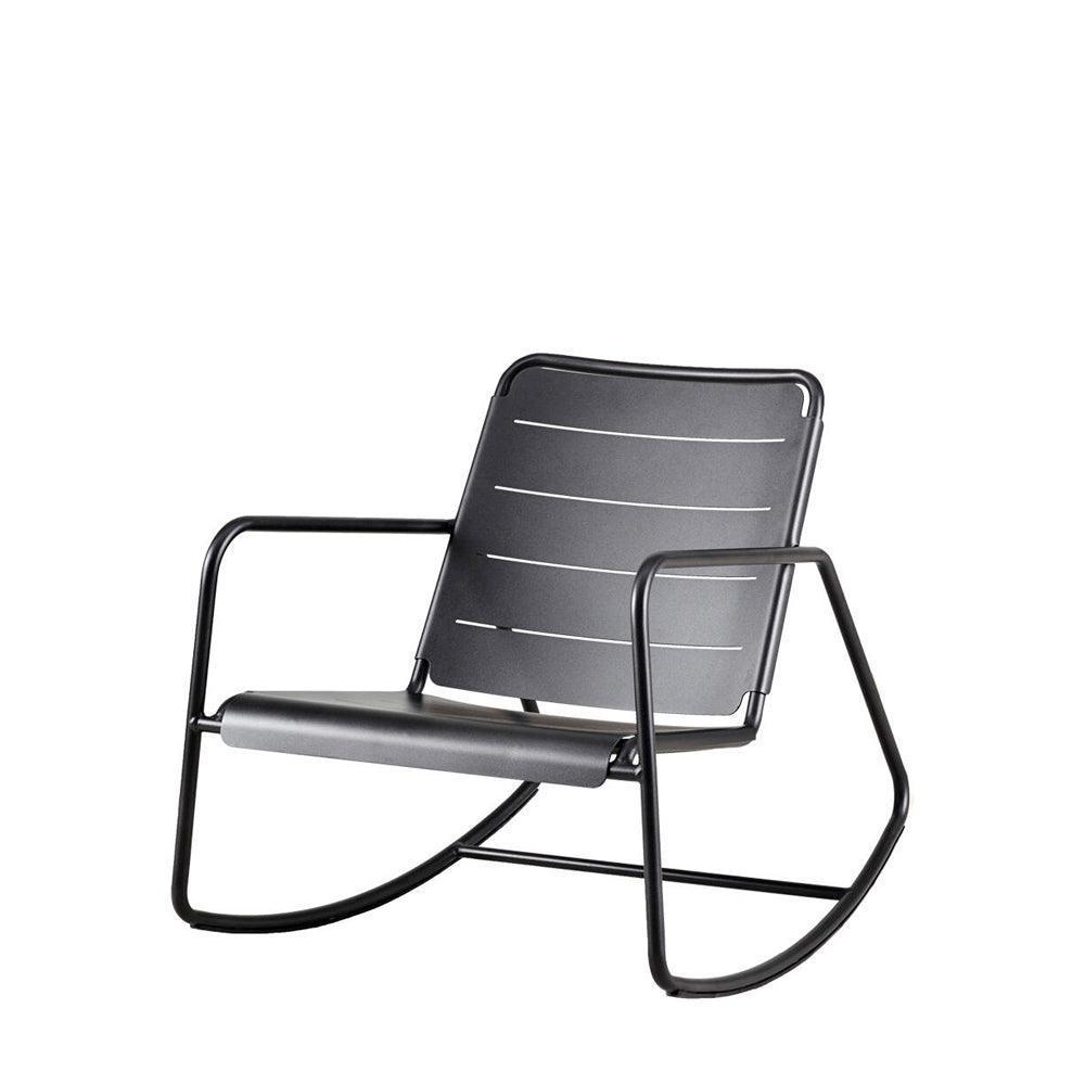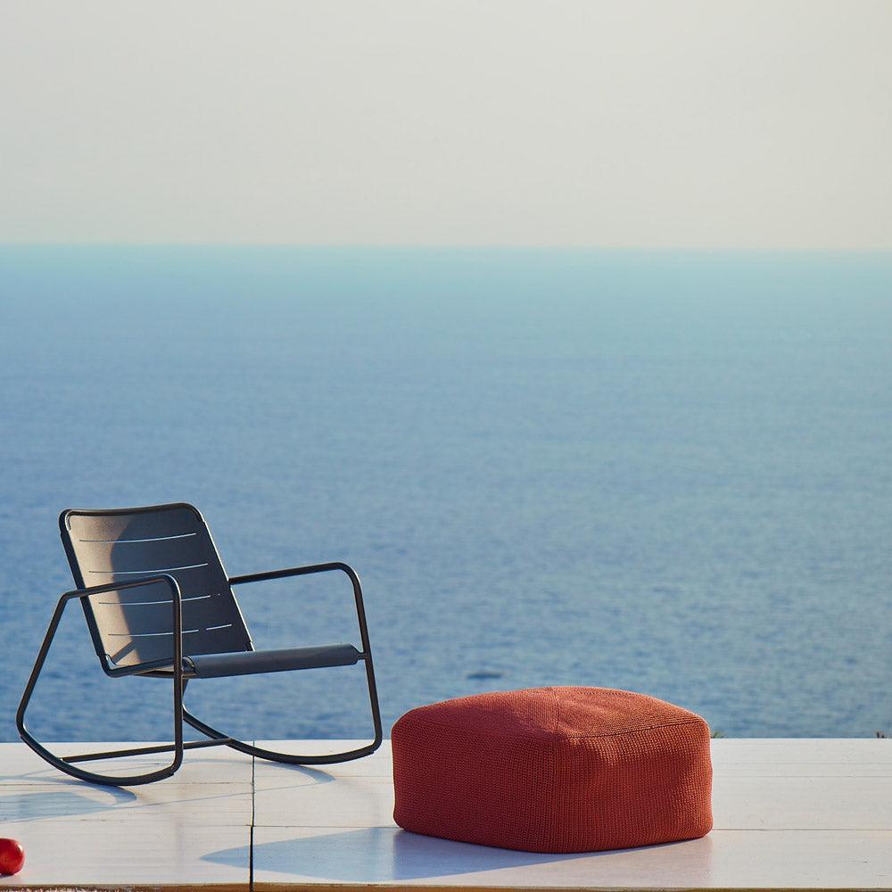 The Copenhagen rocking chair is a contemporary interpretation of the classic "grandma" rocking chair. It is a modern, ultitarian and functional design statement. The rocking chair can be used as a standalone piece of furniture or together with the other products of the Cane line as a comfortable and playful element, as it adapts to any style of interior and exterior design. The Copenhagen rocking chair is made of weatherproof, powder-coated aluminum and is available in the color Aqua. The seat and backrest are perforated to create transparency and drain any water that may occur when used outdoors. The Copenhagen rocking chair was designed by Strand+Hvass.