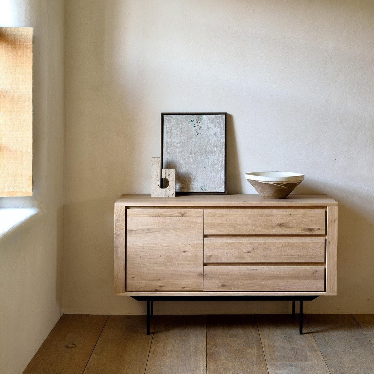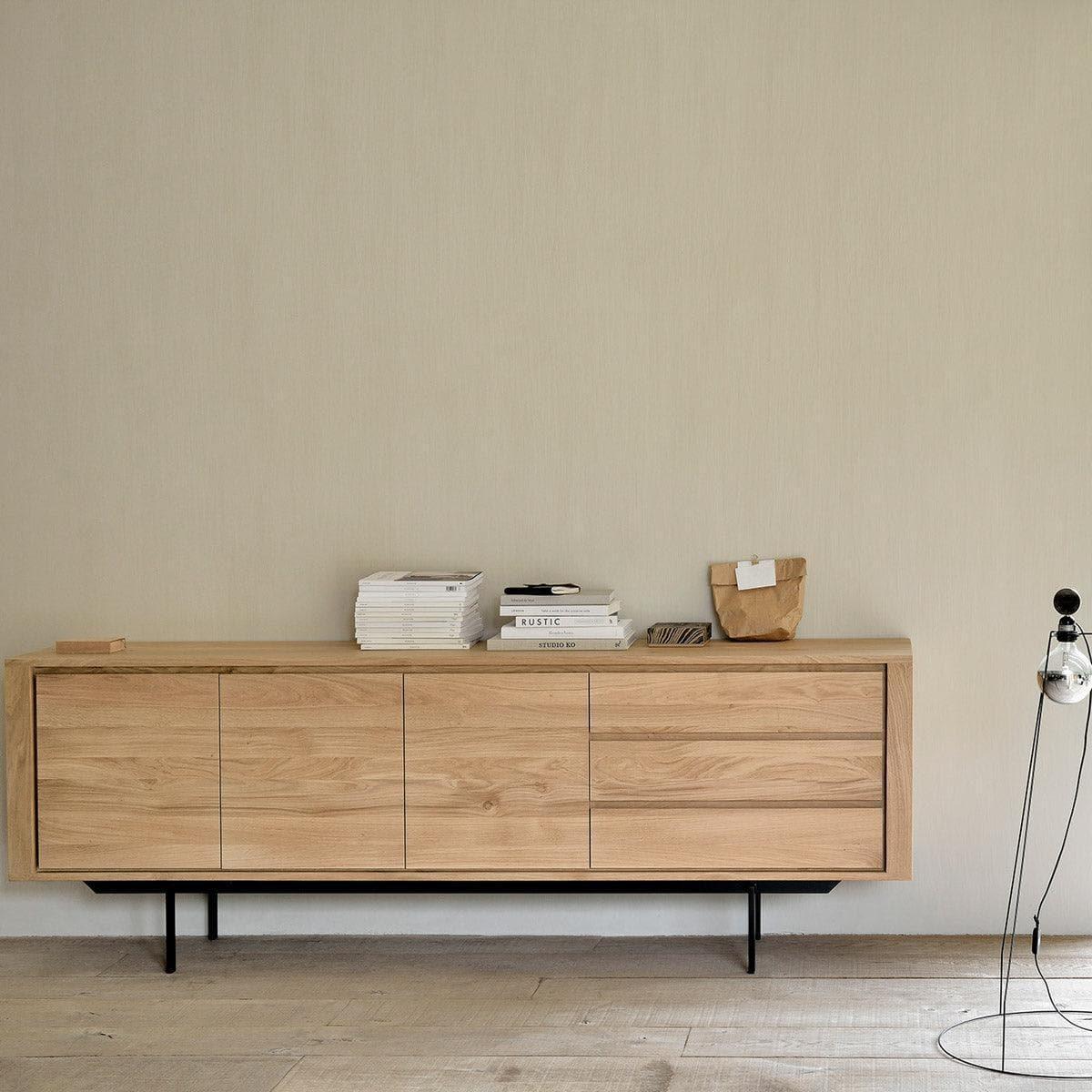The SHADOW chest of drawers from Ethnicraft is the perfect combination of elegance and functionality, ideal for modern living spaces. Made from high-quality Serbian oak, which comes from sustainably managed forests, this piece of furniture not only promises longevity, but is also an environmentally conscious choice for your home. The warm wood tone of the oak radiates comfort and blends harmoniously into various interior styles.