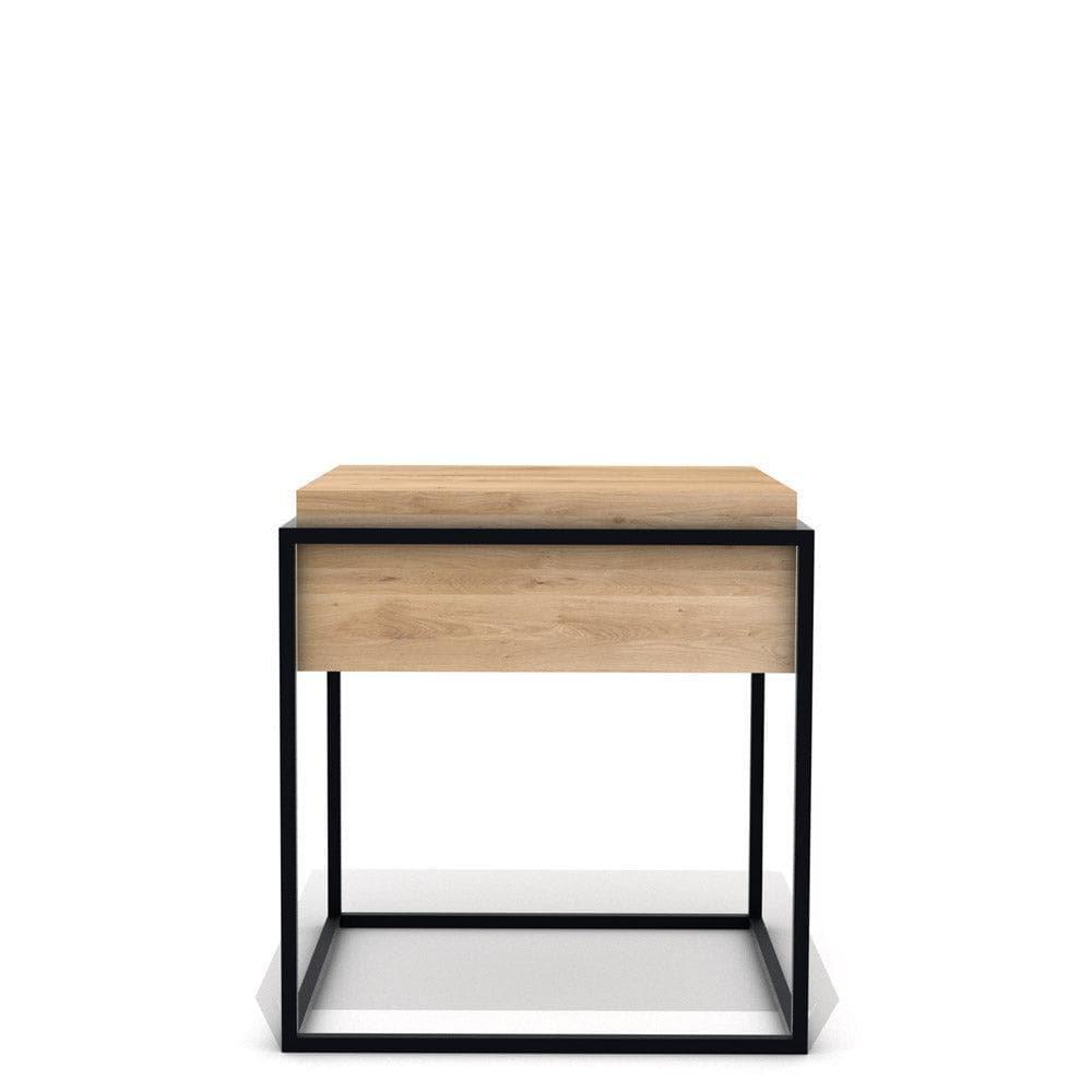 Drawer: 100% solid oak Frame: metal Drawer: Oak Frame: BlackSize 48 x 48 x H51 cm weight 10 kg material Finish Oiled color Guarantee 2 year manufacturer's guarantee
