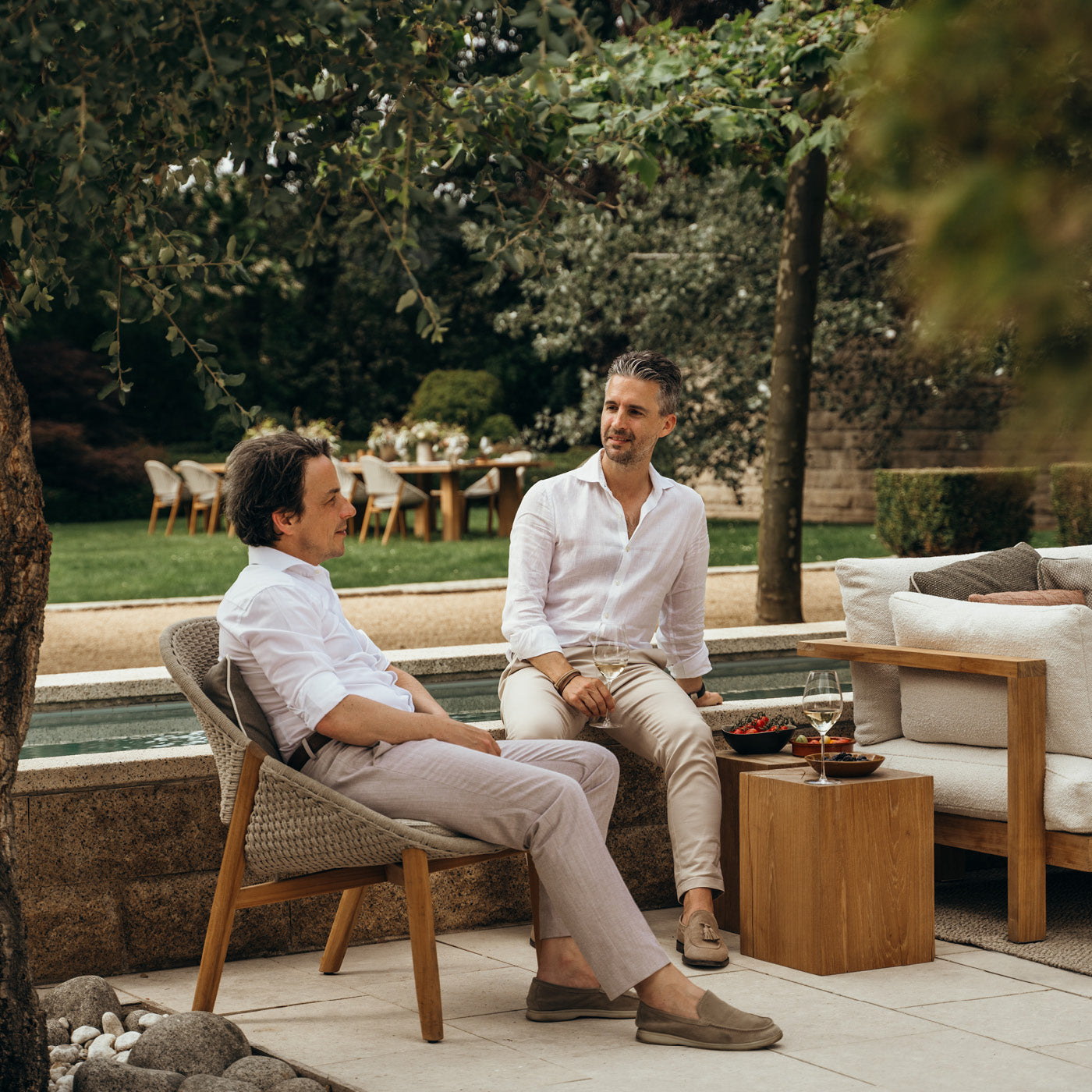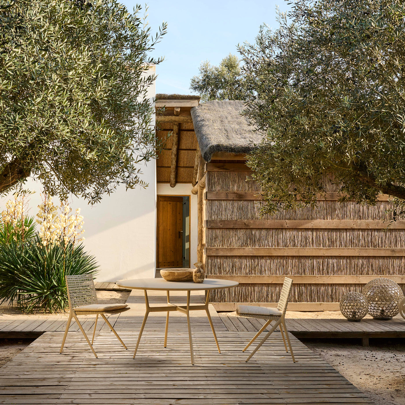 Tous les meubles de la collection Branch sont extrêmement faciles d'entretien grâce à leur structure en aluminium et leurs plateaux en aluminium, en teck ou en granit et conviennent également à une utilisation dans des climats rudes et salins comme au bord de la mer ou au bord de la piscine.