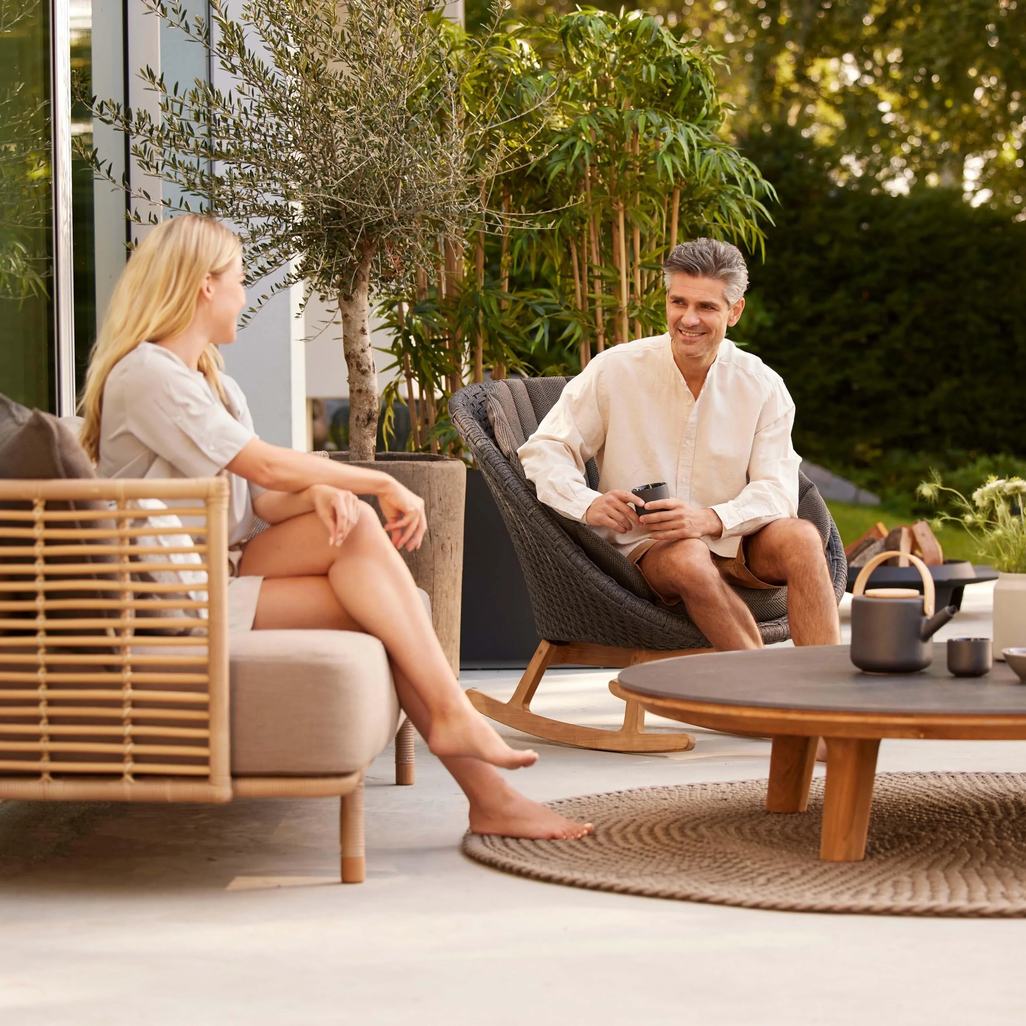 Avec le fauteuil à bascule Peacock, Cane-Line vous invite à vous asseoir et à vous détendre comme jamais auparavant. Quoi de plus agréable que de savourer un gin tonic fraichement préparé au milieu de la nature dans votre jardin, pendant que vous vous balancez lentement de haut en bas sur des patins incurvés en Téak de qualité A, la meilleure qualité sur le marché ?