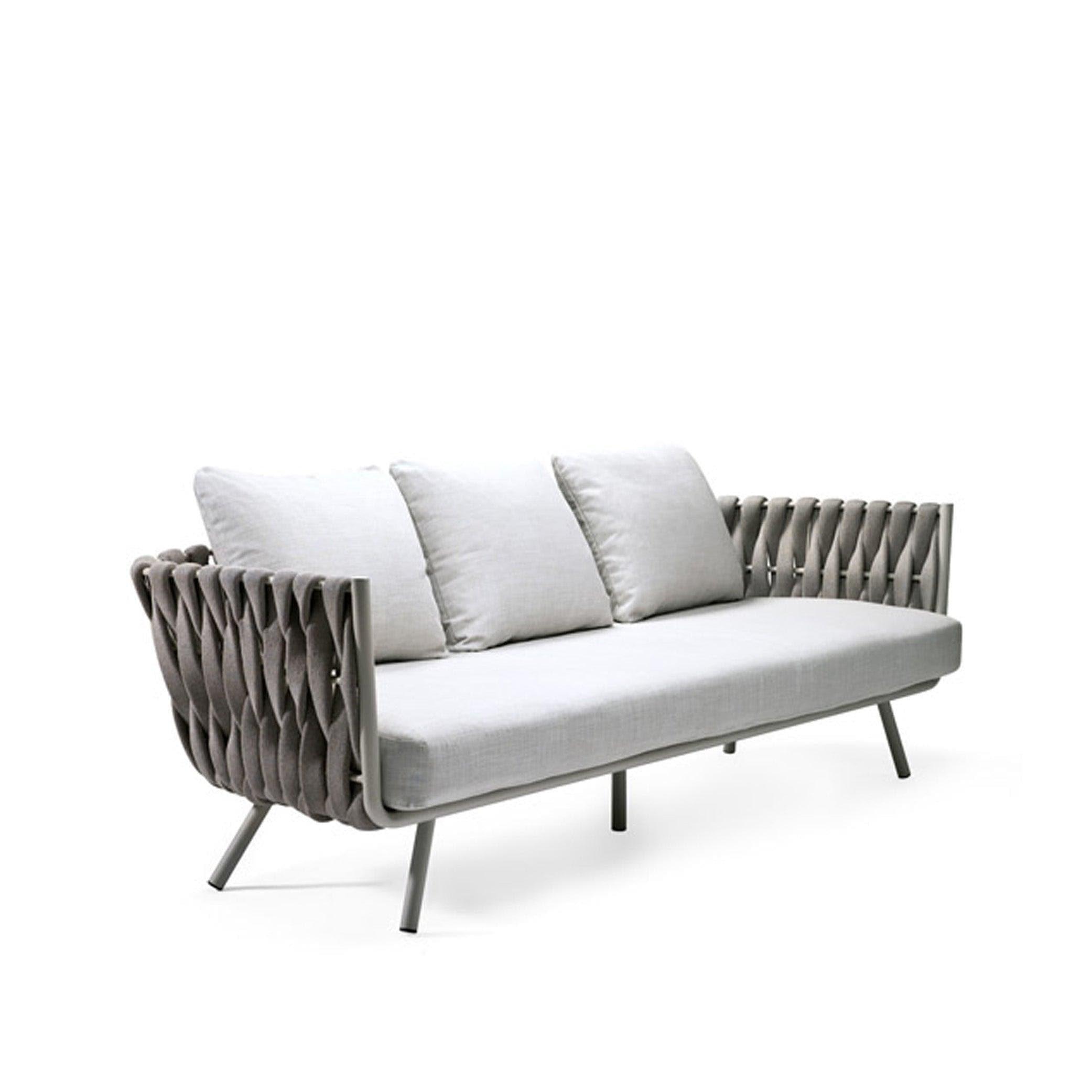 Étant donné l’utilisation d’acier inoxydable, la structure est non seulement filigrane et élégante, mais également très robuste. Chaque canapé est recouvert à la main d’un tissage de Textilène et de Tricord, un matériau développé exclusivement pour Tribù et particulièrement résistant aux UV et à la dégradation. Les coloris naturels lui permettent de s’adapter aisément à tout type d’environnement, du petit cabanon de jardin pittoresque au balcon design de centre-ville.