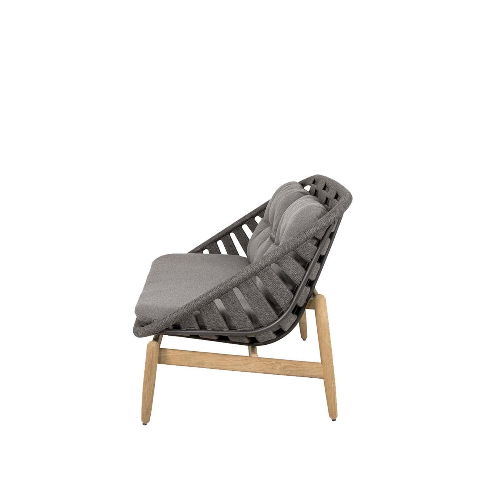 135x85xH85cm Hauteur d'assise : 40 cm Profondeur d'assise : 53 cm Hauteur des accoudoirs : 60 cm Structure : teck Housse de coussin : Cane-line Soft Rope Structure : teck Taie d'oreiller : Gris