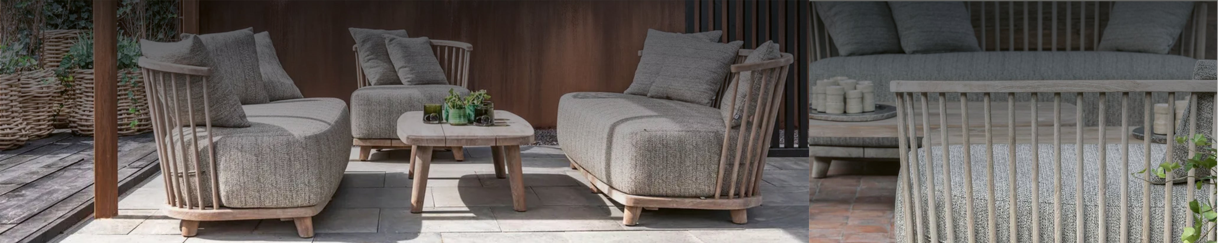 Le canapé de jardin CAROL de Gommaire combine une structure en teck massif avec un rembourrage généreux. Un design Outdoor belge pour les jardins, terrasses et salons exigeants.