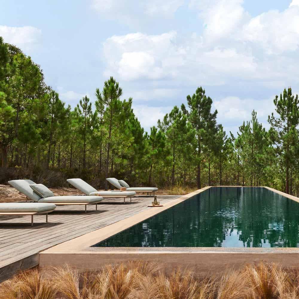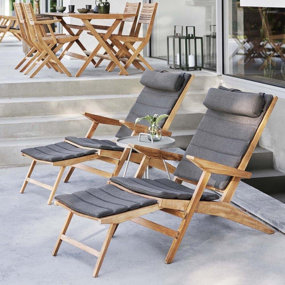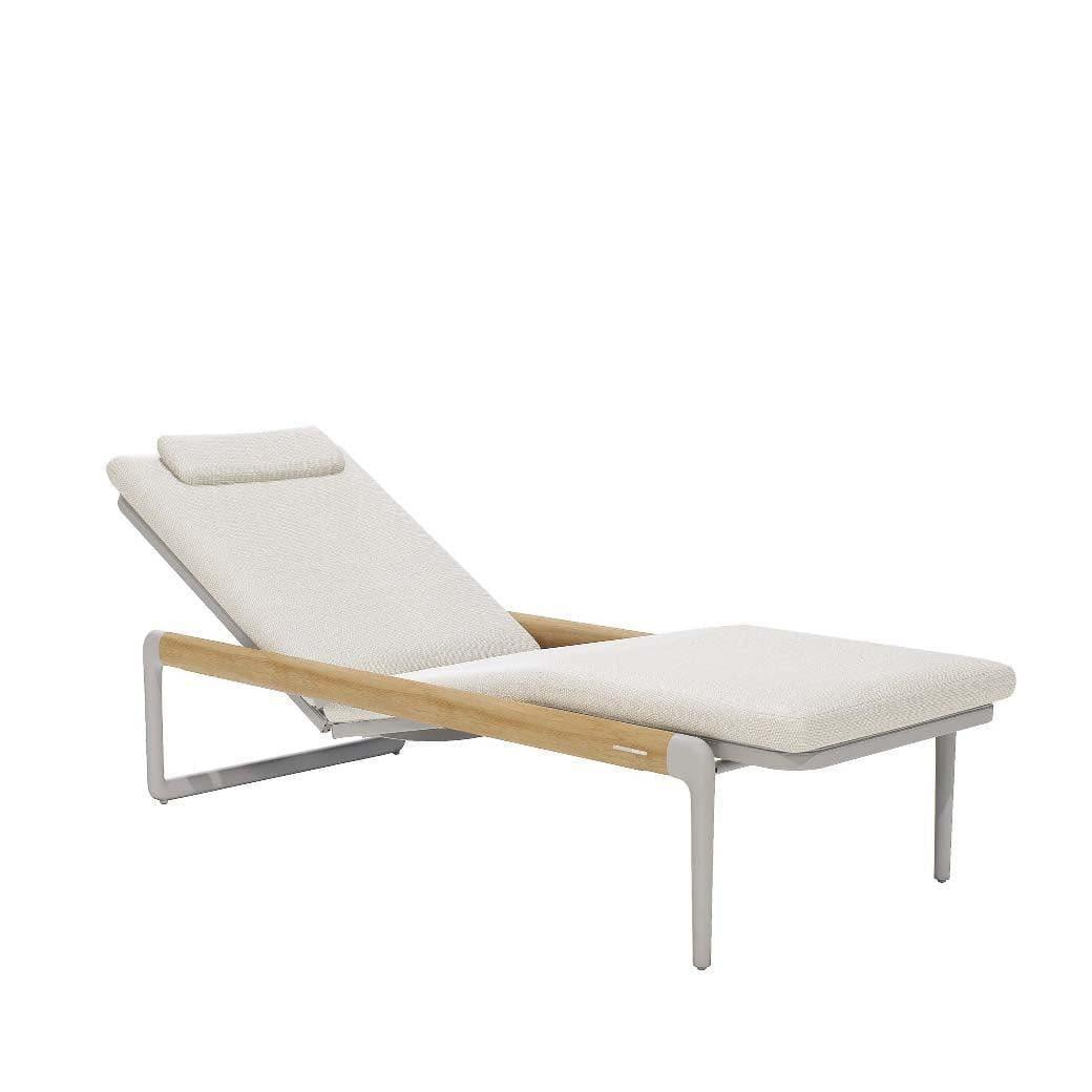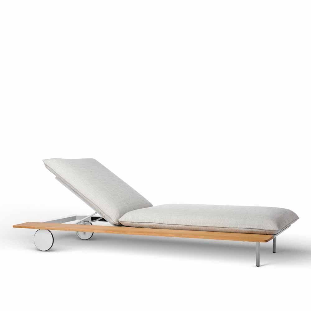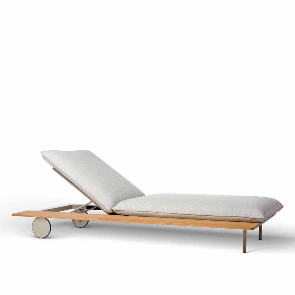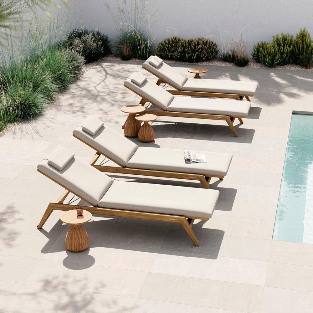 Chaise longue en teck SENJA - Plateau - Linen/Teak