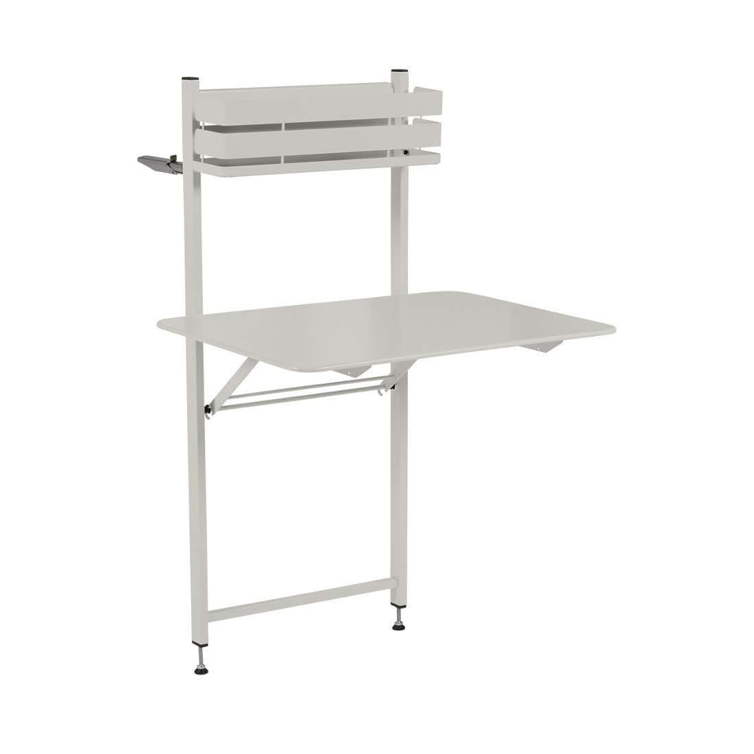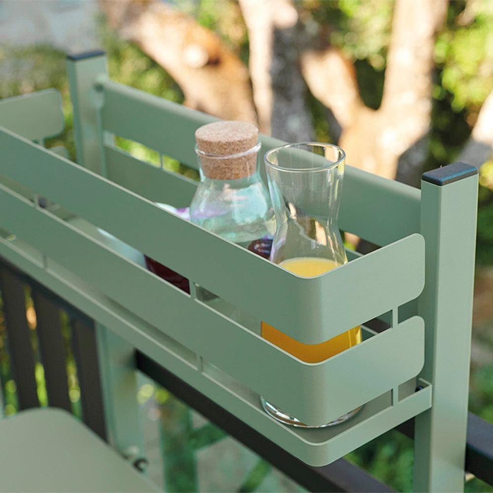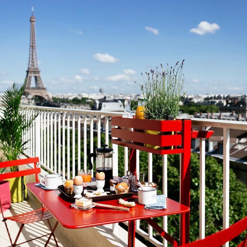La table de balcon est la dernière née de la célèbre collection Bistro ! Pratique et fonctionnelle, cette table pliante peut accueillir 2 personnes pour un moment de convivialité et se rend invisible lorsque le plateau est rabattu. Elle s'adapte à la hauteur du balcon tout en garantissant stabilité et confort grâce à son astucieux système de vérins. Et pour répondre à toutes les attentes, elle peut également être fixée au mur. Idéal pour les petits espaces urbains, il est disponible dans les 25 couleurs du nuancier et est équipé d'un bac de rangement qui permet d'ajouter un peu de couleur au balcon.