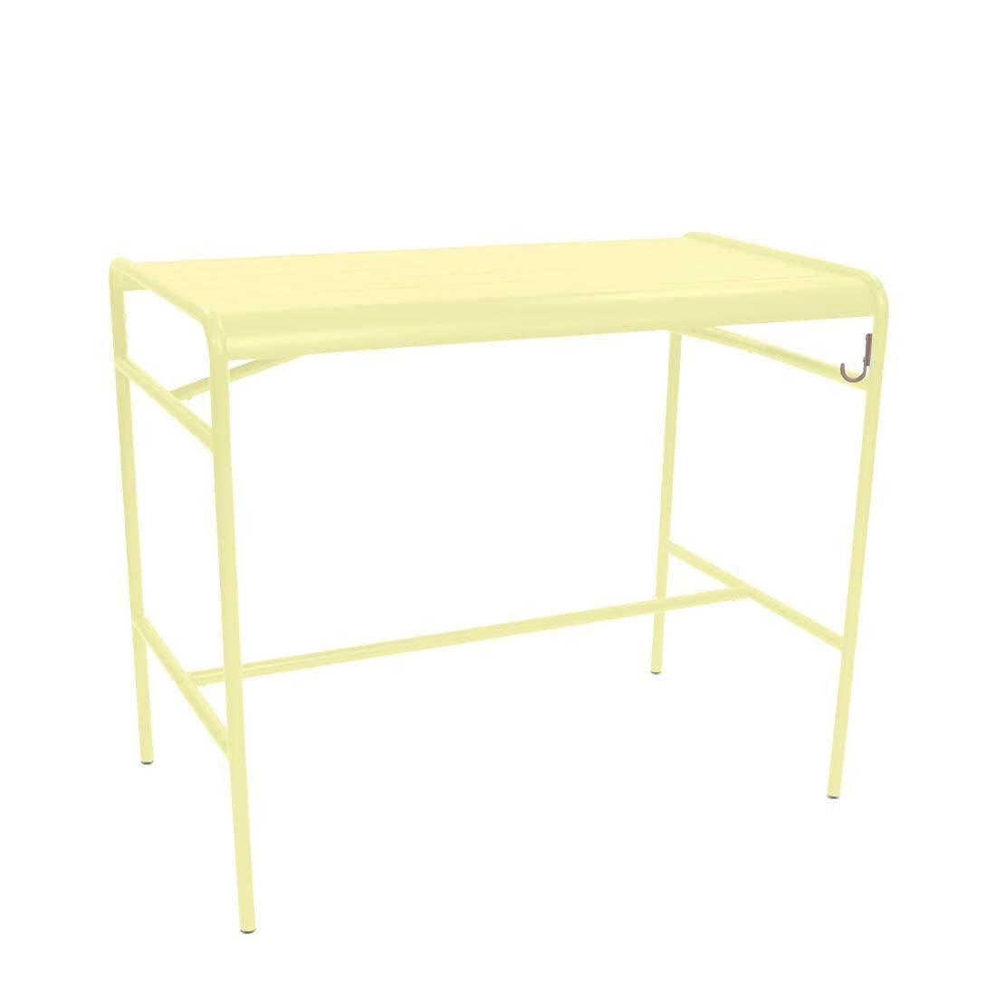 Confortable et accueillante, cette table haute pour 4 à 6 personnes promet des moments de convivialité dès l'arrivée des beaux jours. Elle reprend les codes de la collection (design, durabilité, simplicité et légèreté) et offre quelques détails pratiques toujours appréciés, comme un crochet pour accrocher son sac à main ou sa veste. Sa hauteur répond également à la tendance actuelle de la "table haute", idéale pour un apéritif improvisé entre amis. Cette table en aluminium est aussi à l'aise à l'extérieur qu'à l'intérieur, où elle peut être utilisée comme bureau avec un style très industriel. Disponible dans les 25 couleurs du nuancier Fermob, il suffit de la combiner avec les sièges hauts de la collection.