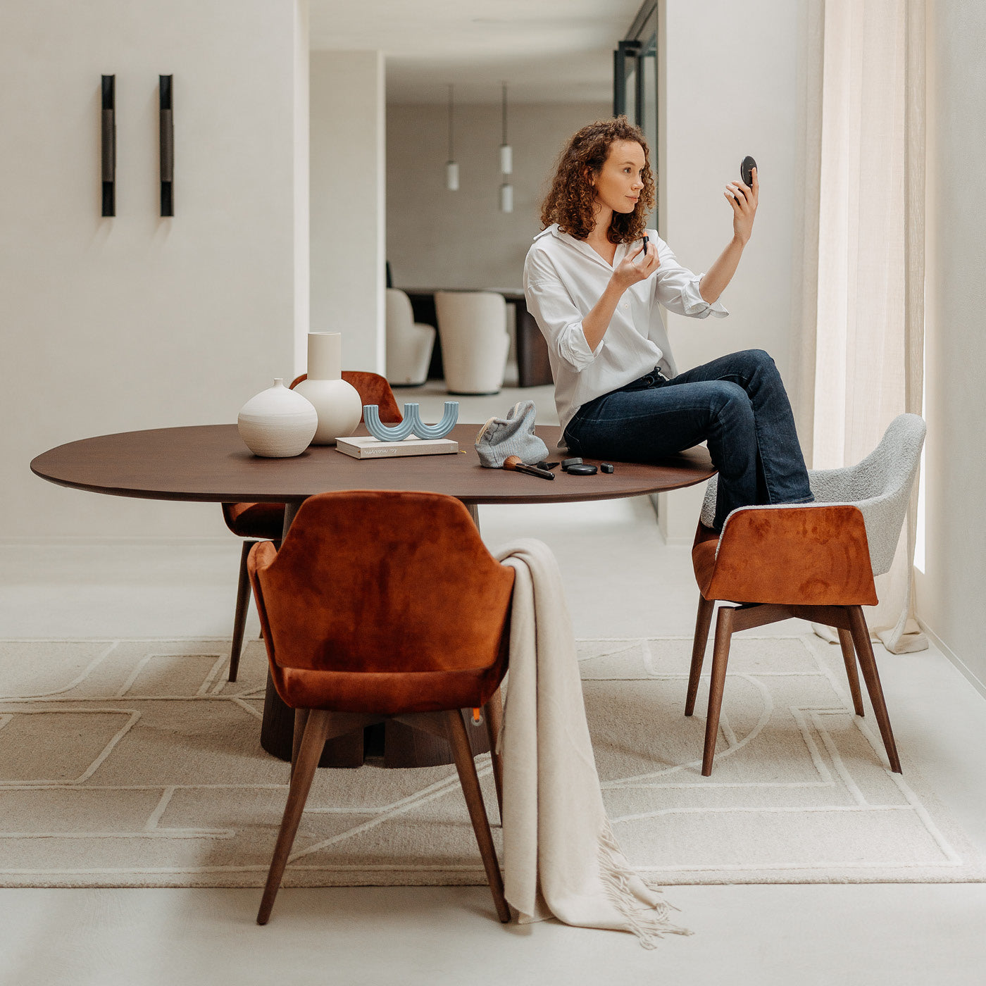 Ajoutez une touche d'élégance à votre salle de réunion avec cette table Trava dotée du revêtement FENIX NTM.© Revêtement de la table. Au lieu de devoir choisir uniquement entre le blanc immaculé ou le noir, nous proposons différentes teintes foncées et neutres pour le revêtement.