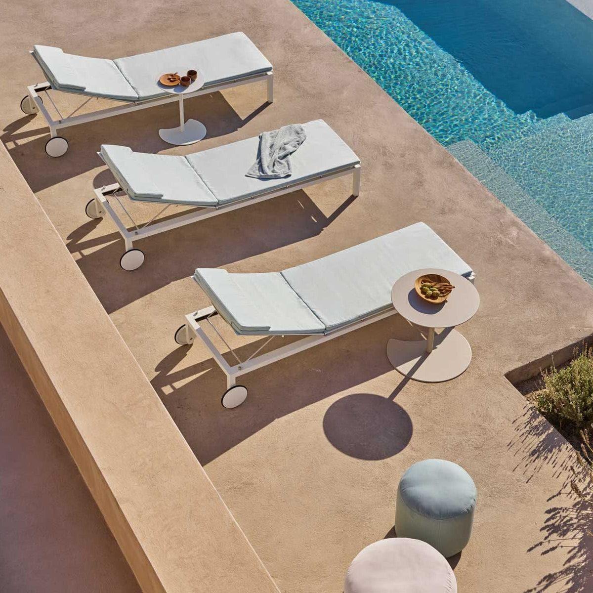 Tous les meubles de la collection Drops sont extrêmement faciles à entretenir grâce à leur structure en aluminium et conviennent également à une utilisation dans des climats rudes et salins comme au bord de la mer ou au bord de la piscine.
