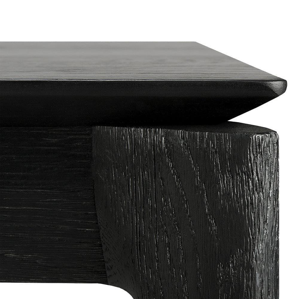 Der Ausziehtisch BOK von Ethnicraft ist ein Meisterstück des modernen Möbeldesigns. Gefertigt aus massiver Eiche in einem eleganten schwarzen Ton, verbindet dieser Tisch zeitlose Ästhetik mit funktionaler Vielseitigkeit. Entworfen vom renommierten Designer Alain van Havre, besticht der Tisch durch seine klare Linienführung und die feinen Details wie abgerundete Ecken und die unter der Tischkante verlaufende Fase, die der Tischplatte eine schwebende Optik verleiht.