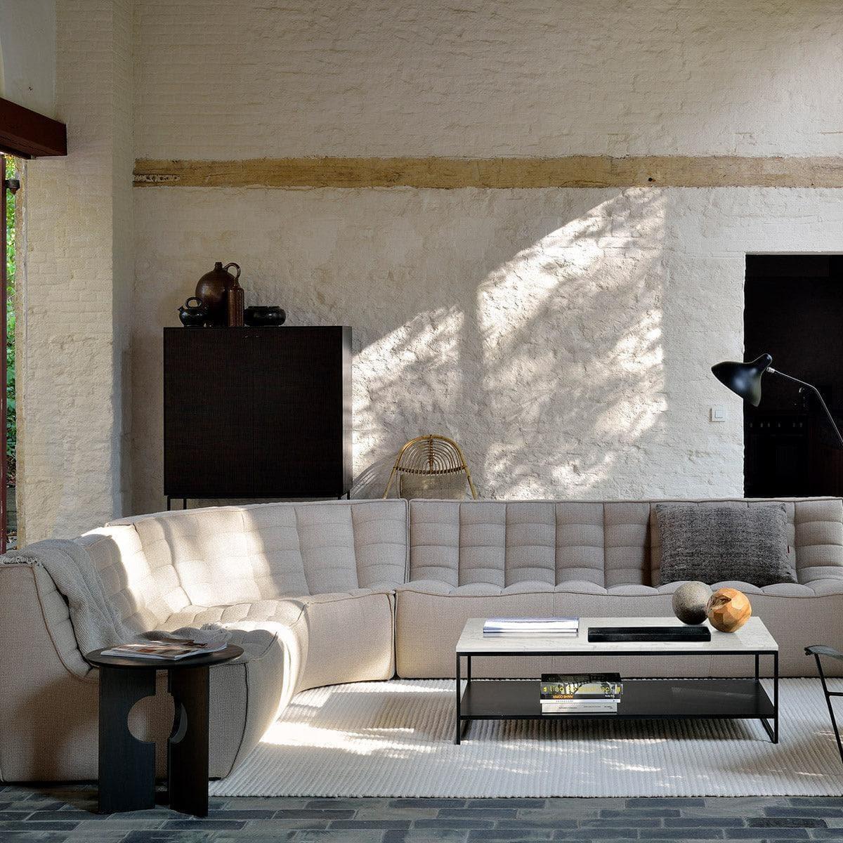 Die Rundecke N701 von Ethnicraft verkörpert die perfekte Synthese aus Komfort, Stil und Flexibilität. Entworfen von Jacques Deneef, bietet dieses Möbelstück unzählige Möglichkeiten, Ihr Wohnzimmer individuell und stilvoll zu gestalten. Mit der Wahl zwischen verschiedenen Modulen und Größen haben Sie die Freiheit, ein einzigartiges Arrangement zu schaffen, das genau zu Ihren Bedürfnissen passt.