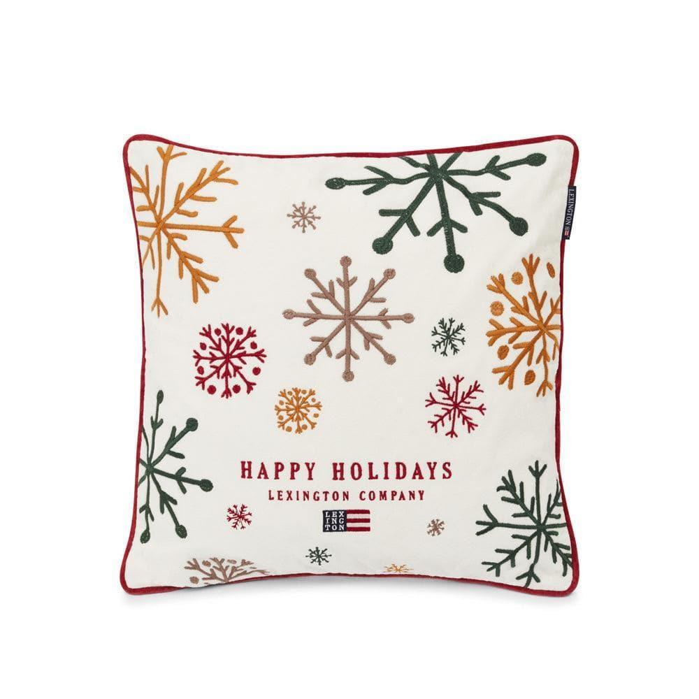 Der Lexington HOLIDAY Snowy gestickte Kissenbezug bringt festliche Freude in Ihr Zuhause. Gefertigt aus 100% reiner Baumwolle, vereint dieser Kissenbezug Qualität mit stilvollem Design. Die Vorderseite ist kunstvoll mit bunten, gestickten Schneeflocken verziert, die in verschiedenen Größen erscheinen und somit einen lebendigen und dennoch eleganten Akzent setzen.