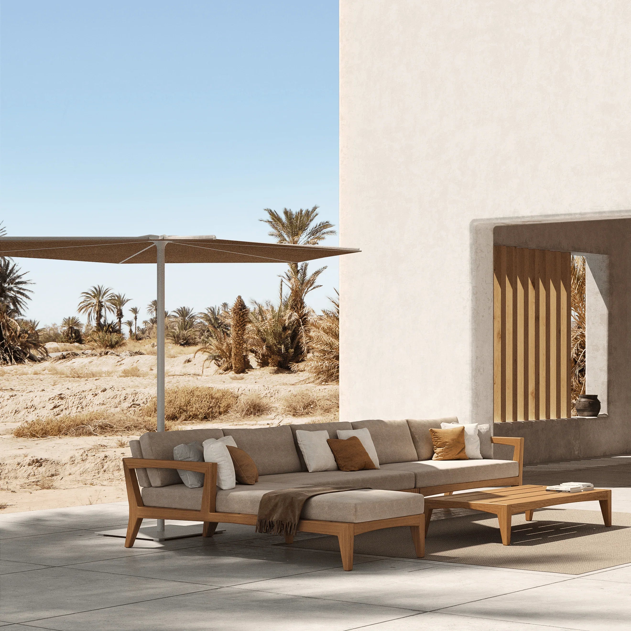 Das edle Teakholz, das in der Zenhit Kollektion verarbeitet wird, ist nicht nur ein visuelles Highlight, sondern auch außerordentlich langlebig und wetterbeständig. Es verleiht dem Lounge Set eine warme, einladende Ausstrahlung und fügt sich nahtlos in jede luxuriöse Outdoor-Umgebung ein. Der natürliche Charme des Holzes wird durch die elegante Linienführung und das moderne Design der Möbelstücke perfekt ergänzt.