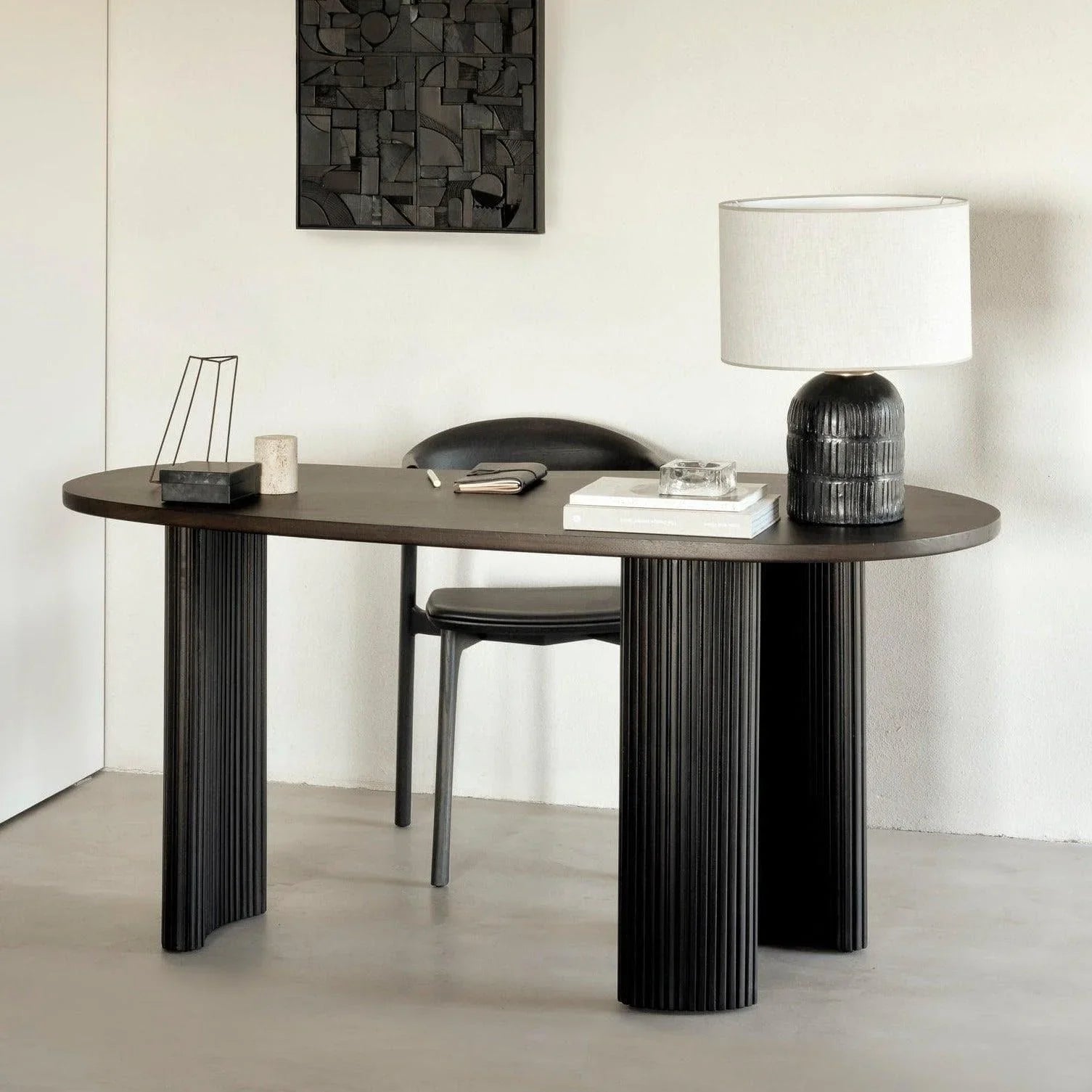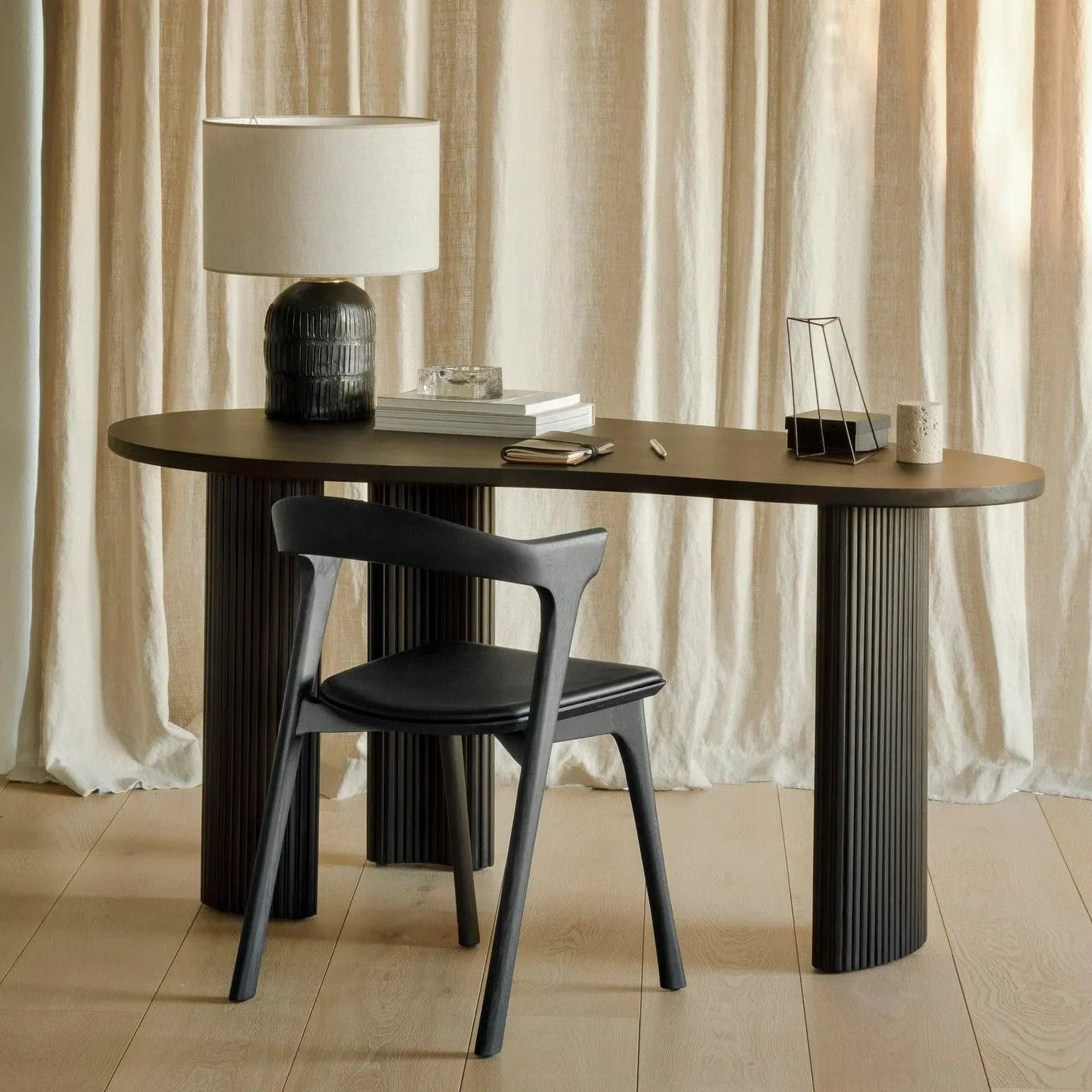 Der Schreibtisch BOOMERANG von Ethnicraft ist mehr als nur ein Arbeitsplatz – er ist ein Statement moderner Eleganz und Funktionalität. Inspiriert von den geschmeidigen Formen der Natur, vereint dieser Schreibtisch Kunstfertigkeit und Design zu einem einzigartigen Möbelstück. Die auffällige, kieselsteinförmige Tischplatte ruht auf geschwungenen Beinen, die einen Holzstab-Effekt erzeugen und so den natürlichen Charme unterstreichen. Diese harmonische Kombination von Form und Material verleiht jedem Raum eine besondere Note.
