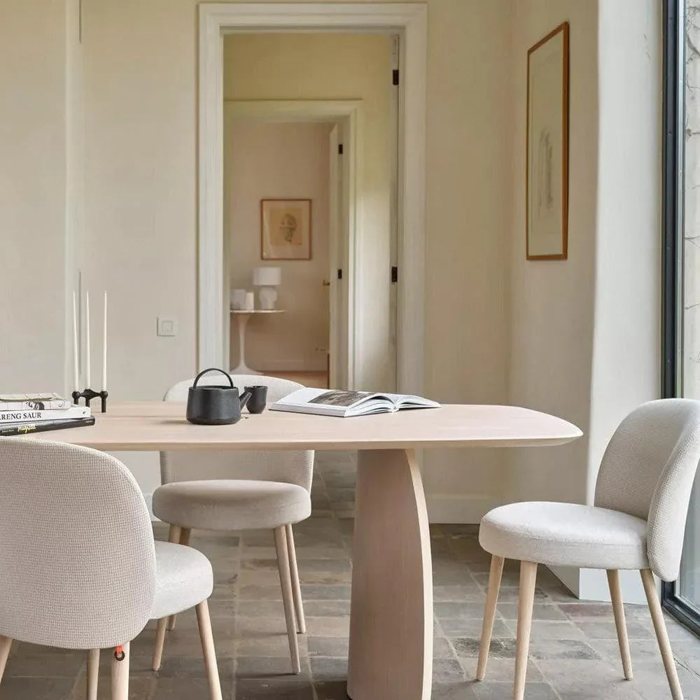 Ein herausragendes Merkmal dieses Stuhls ist seine robuste Holzbasis mit zentraler Verankerung, die in verschiedenen Varianten erhältlich ist. Sie haben die Wahl zwischen Buche, Eiche oder Nussbaum, jeweils in unterschiedlichen Lackierungen, die sich nahtlos in jede Einrichtung integrieren lassen. Die sorgfältige Verarbeitung dieser hochwertigen Hölzer garantiert Stabilität und Beständigkeit.