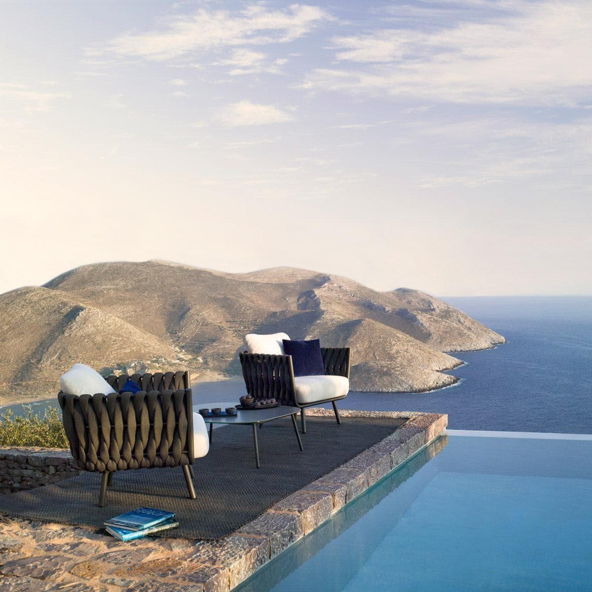Der Clubsessel TOSCA von Tribù, entworfen von der renommierten Designerin Monica Armani, verbindet Eleganz mit einer schwebenden Leichtigkeit. Diese Luxuskollektion ist eine Hommage an die Naturnähe und die Emotionen, die durch das raffinierte Design hervorgerufen werden. Die einzigartige Sitzschale besteht aus einem besonders breiten, vertikalen Flechtwerk und ruht auf schlanken, sich verjüngenden Beinen. Der innovative Materialmix aus Schaumgummi, umhüllt von einem nahtlosen, gestrickten Überzug aus Textilene und Tricord®, verleiht dem Sessel eine sanfte Haptik und ein natürliches Aussehen, das zudem zu 100% witterungsbeständig ist.