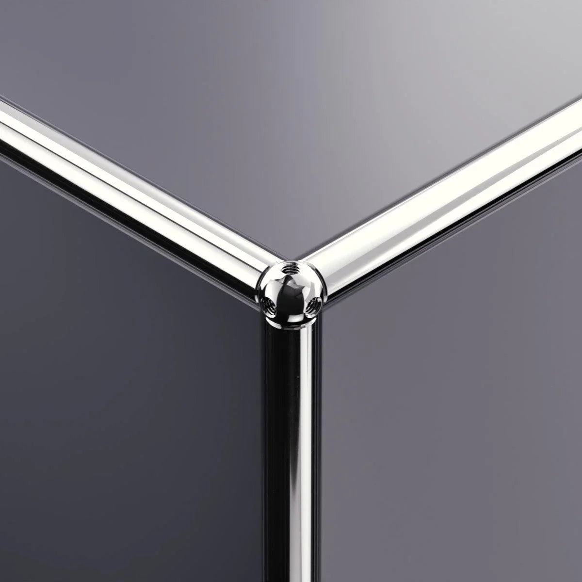 Hergestellt aus hochwertigen Materialien, überzeugt das Sideboard durch verchromte Stahlrohre und pulverbeschichtete Metallpaneele, die nicht nur für ein modernes Aussehen sorgen, sondern auch für eine außergewöhnliche Langlebigkeit. Diese Materialwahl garantiert, dass das Sideboard den täglichen Anforderungen standhält und über die Jahre hinweg seine Eleganz behält.